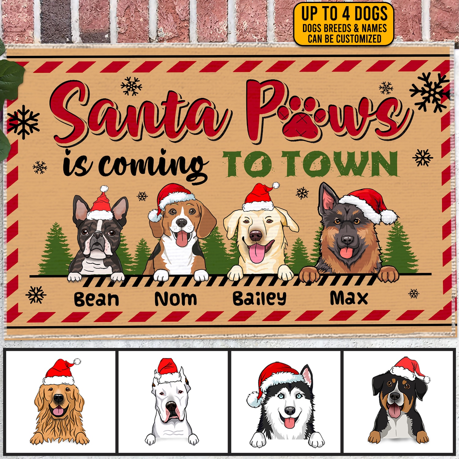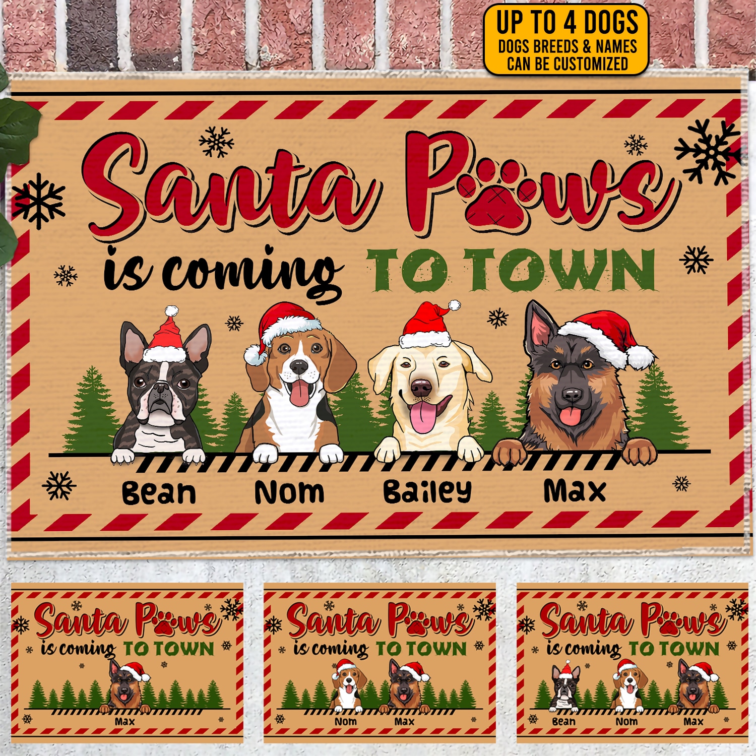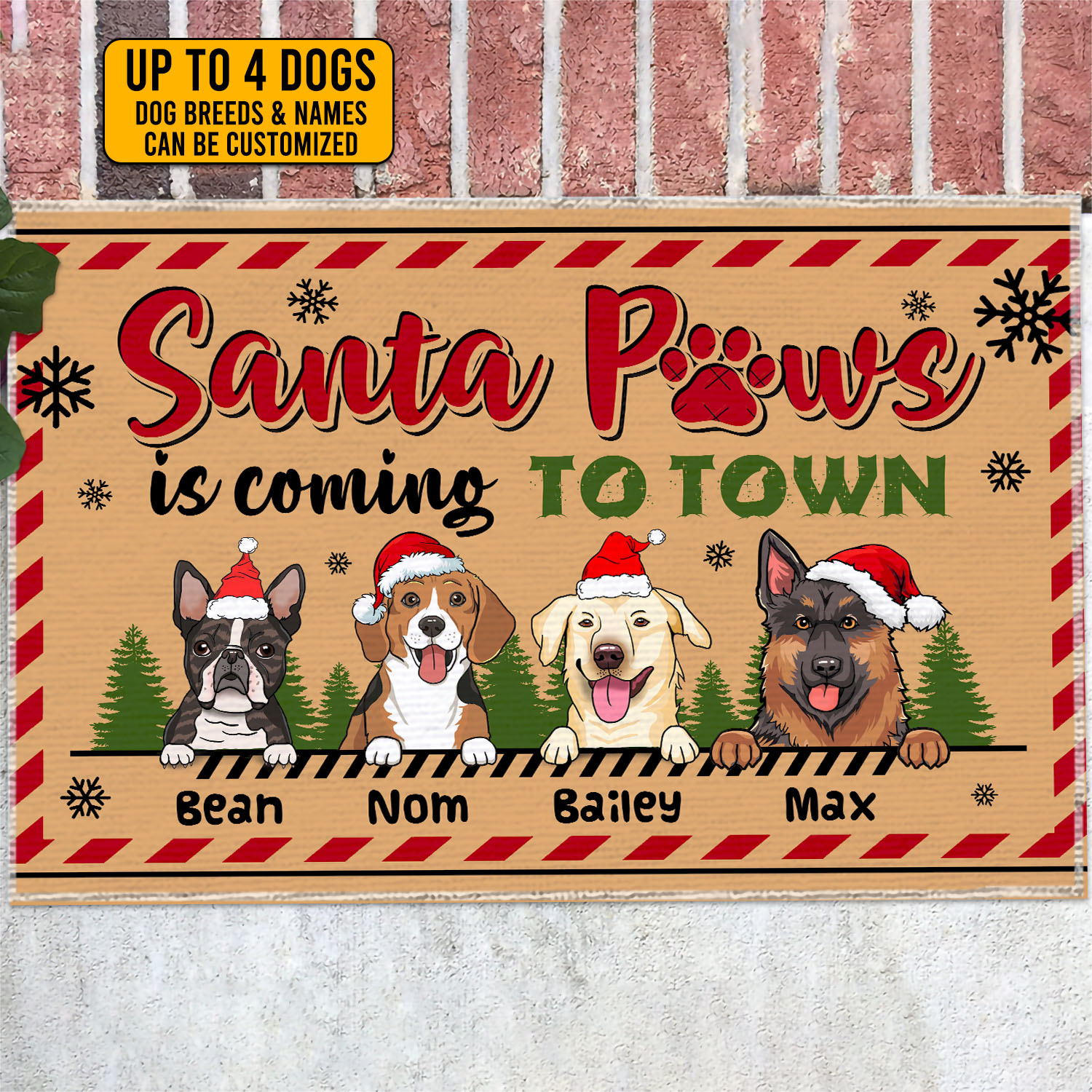 Let’s Shop Santa Paws Is Coming To Town Personalized Dog Christmas Indoor Doormat – Custom Dog Breed Christmas Outdoor Mat!