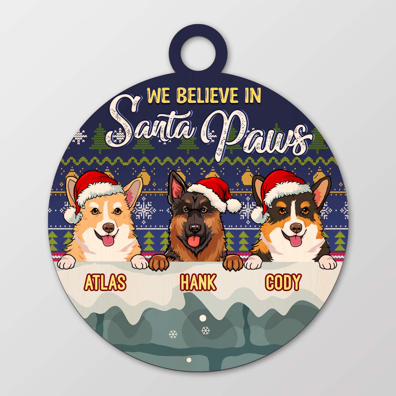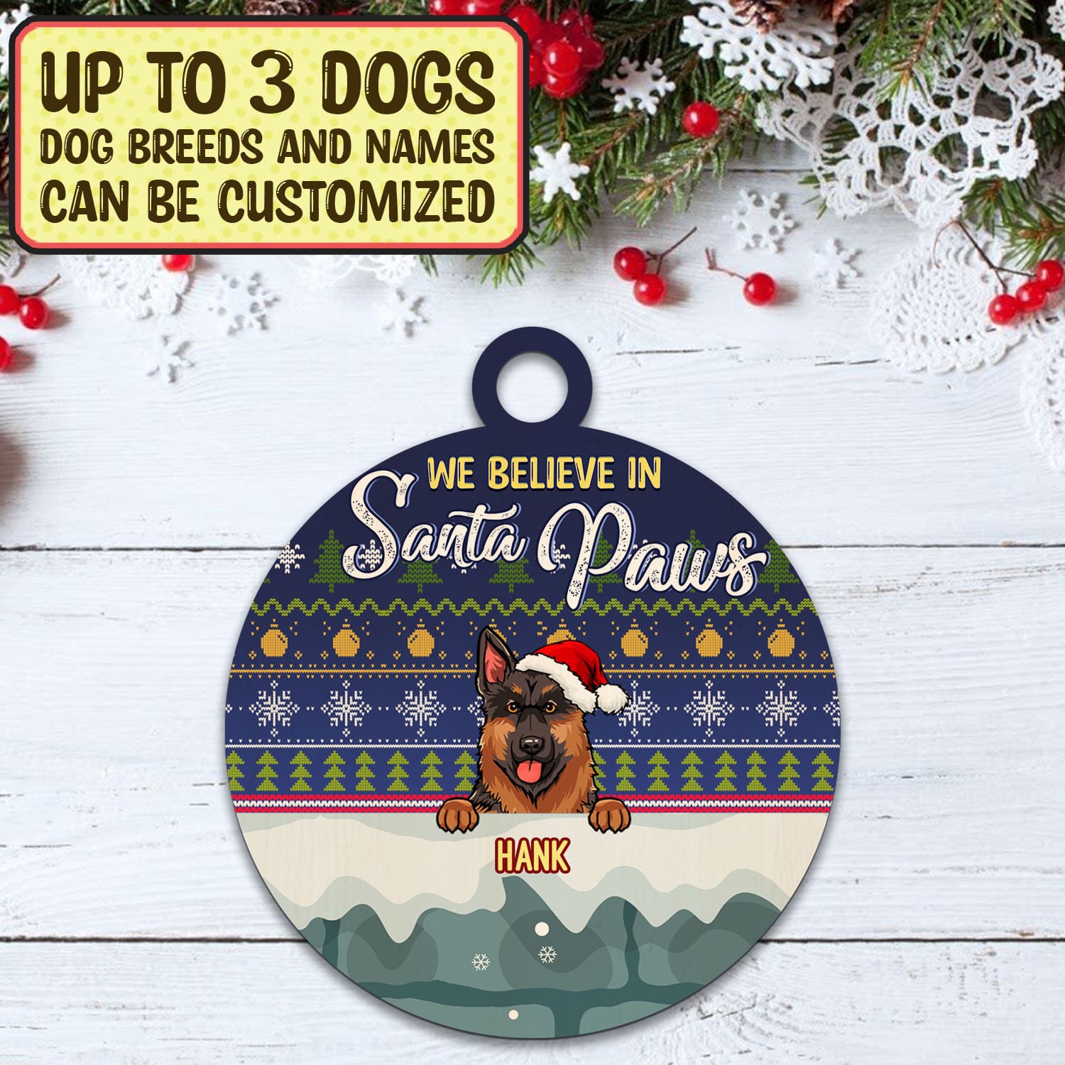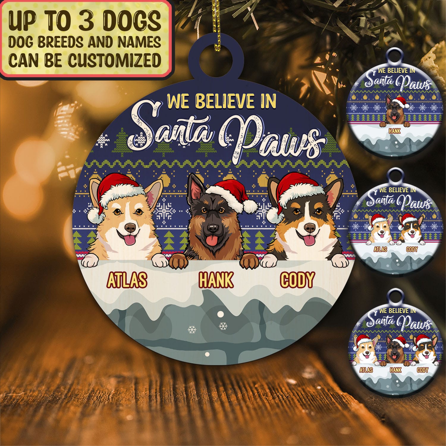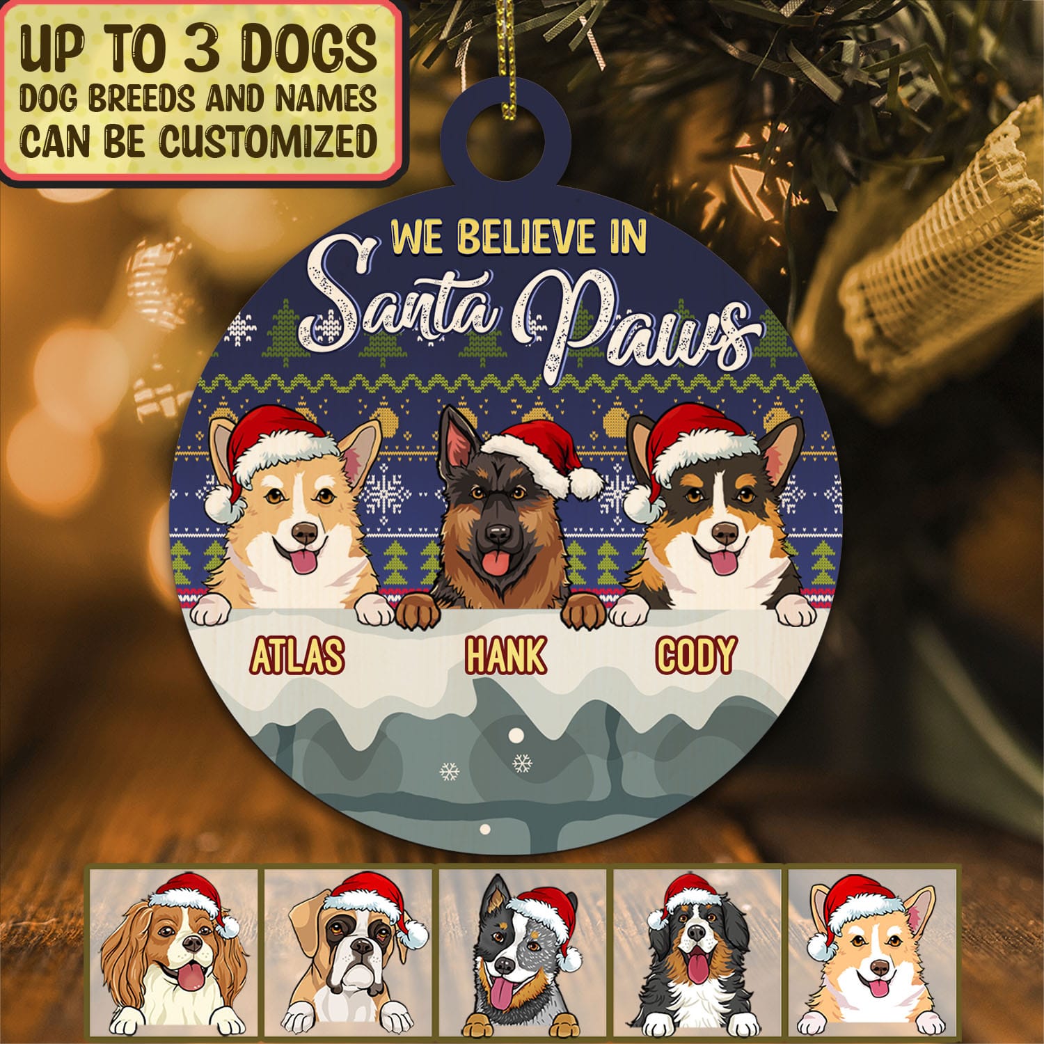 Let’s Shop Personalized Dog Breeds We Believe In Santa Paws Christmas Custom Shaped Wooden Christmas Ornament!