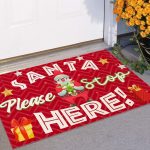Let’s Shop Santa Please Stop Here Doormat – Merry Christmas Winter Decorative Welcome Mat!