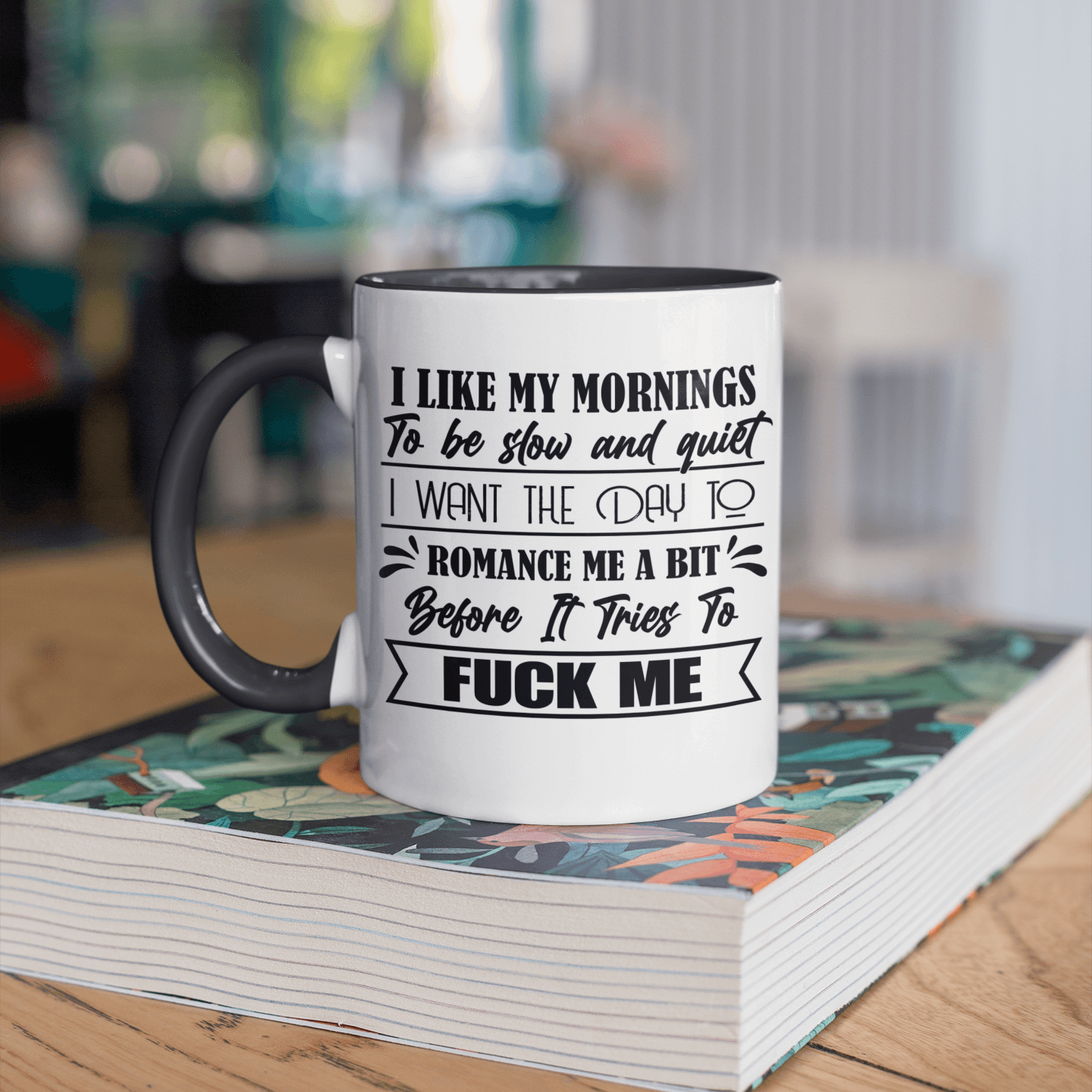 Let’s Shop I Like My Mornings to Be Slow and Quiet I Want the Day to Romance Me a Bit Funny Accent Mug!