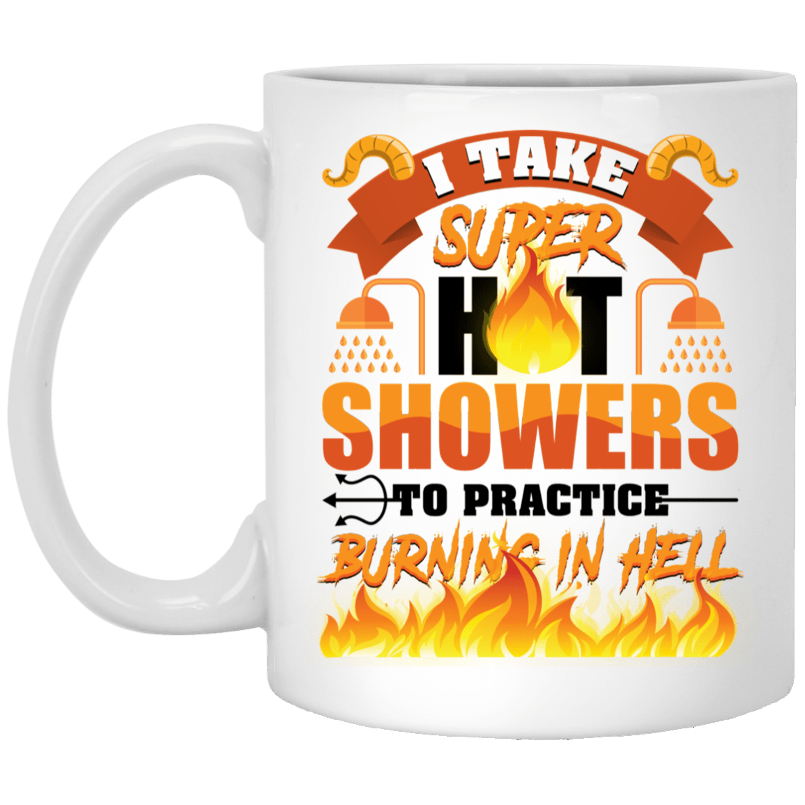 Shop I Take Super Hot Showers To Practice Burning in hell Ceramic Coffee Mug – Beer Stein – Water Bottle.