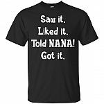 Are you spending too much time to find creative merchandise for you or suitable gifts for your friends, your mommy, your daddy, your children or someone you love? The struggle is over because we have various Saw It Liked It Told Nana Got It Shirt, Funny Shirt Kids, Funny Shirt Youth, Funny Shirts Youth, Birthday Gifts for Children which will make perfect presents for your beloveds. In order to make your present stand out, we have created lots of unique and awesome customized designs.