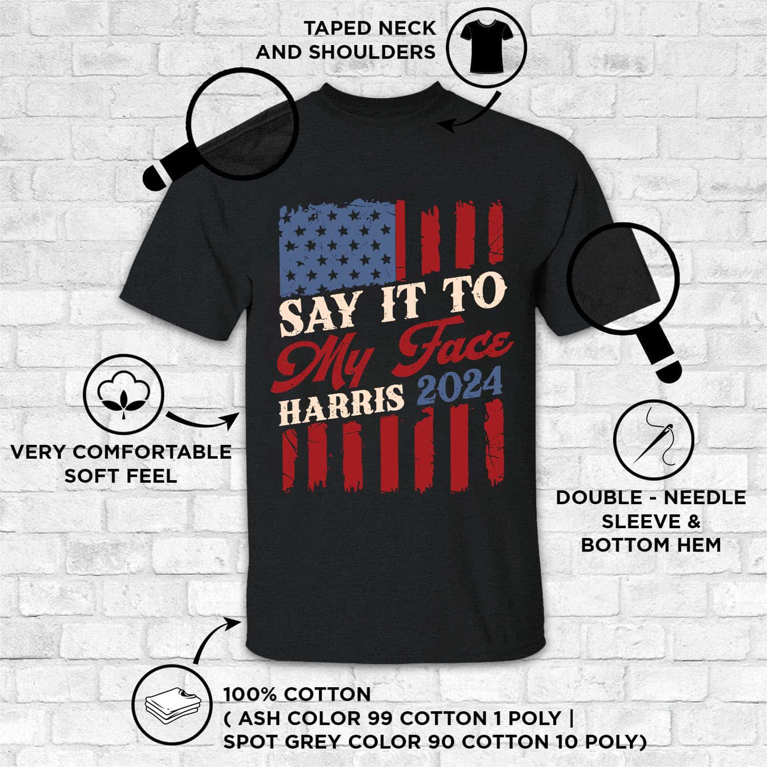 At CubeBik, besides custom apparel, we also offer tees, hoodies, sweaters, raglans, tanks, wall arts, canvases, posters, mugs, blankets, engraved jewelry, personalized necklaces, printed face masks, throw pillows, tote bags, hats, accessories and more on our website, so do not miss our other Say It to My Face Shirt, Say It to My Face Shirt V Neck, Say It to My Face Shirt Kamala, Say It to My Face Shirt Kamala Harris, Say It to My Face Shirt Kamala V Neck, Say It to My Face Shirt Women, Harris Waltz 2024 Shirt, Harris Waltz 2024 Shirt Women. Moreover, all the products are made-to-order and one of a kind custom designs you can’t get elsewhere in normal stores. Let’s discover CubeBik.com now and find your favorite personalized items. We can’t wait to surprise and build beautiful memories with you and your loved ones.