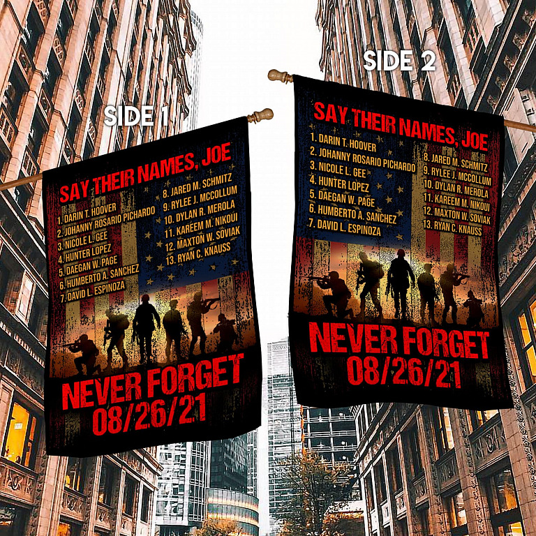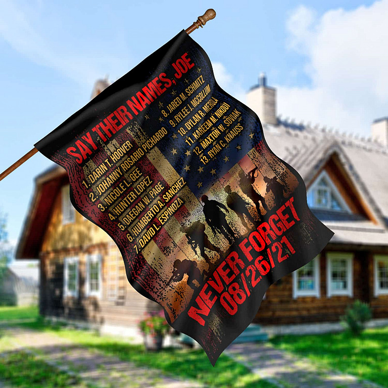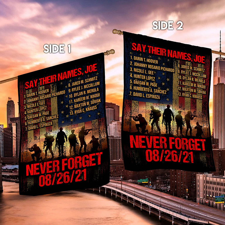 Are you spending too much time to find creative merchandise for you or suitable & special gifts for your mommy, your daddy, your son, your daughter, your children, your friends or someone you love? The struggle is over because we have various 13 Fallen Soldiers Flag, Say Their Names Joe Flag, Never Forget 08 26 21 Flag, Fallen Soldiers Heroes Afghanistan Flag, Names of 13 Fallen Soldiers Flag, Support Our Troops Flag which will make perfect presents for your beloveds. In order to make your present stand out, we have created lots of unique and awesome customized photo gifts & personalized designs.