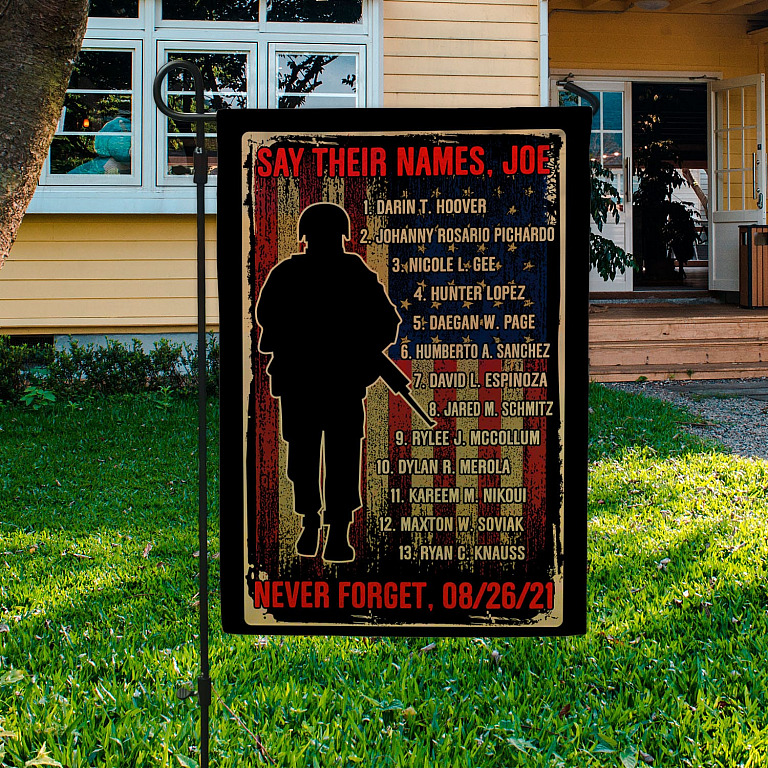 Let’s Shop Names Of 13 Fallen Soldiers Heroes Afghanistan Never Forget 08/26/21 Garden Flag – Say Their Names Joe House Flag!