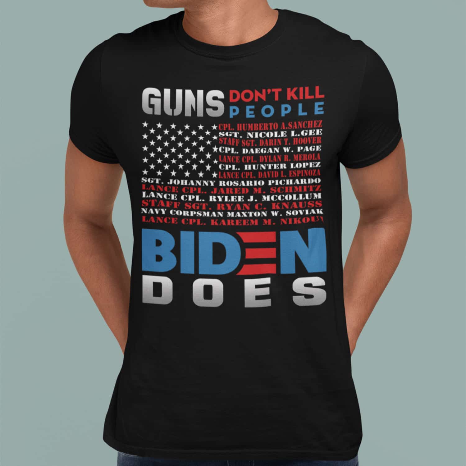 At CubeBik, besides custom apparel, we also offer tees, hoodies, sweaters, raglans, tanks, wall arts, canvases, posters, mugs, blankets, engraved jewelry, personalized necklaces, printed face masks, throw pillows, tote bags, hats, accessories and more on our website, so do not miss our other Never Forget 13 Fallen Soldiers 08/26/2021 Shirt, 13 Fallen Heroes Kabul Afghanistan Shirt, Gun Don’t Kill People Biden Does Shirt, Anti Biden Shirt related merchandise. Moreover, all the products are made-to-order and one of a kind custom designs you can’t get elsewhere in normal stores. Let’s discover CubeBik.com now and find your favorite personalized items. We can’t wait to surprise and build beautiful memories with you and your loved ones.