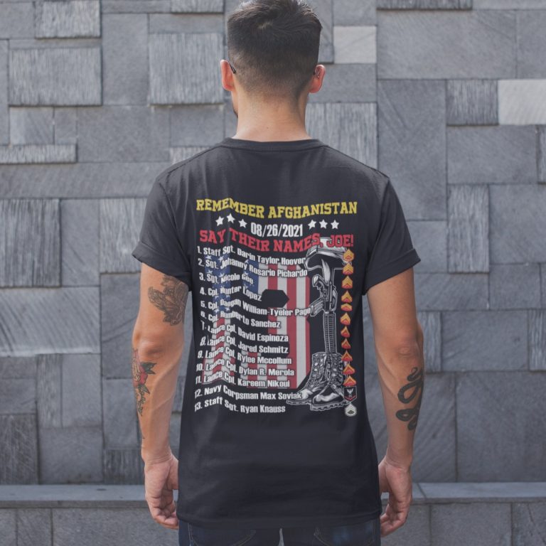 Are you spending too much time to find creative merchandise for you or suitable & special gifts for your mommy, your daddy, your son, your daughter, your children, your friends or someone you love? The struggle is over because we have various Say Their Names Joe Shirt, Say Their Names Joe – Names of Fallen Soldiers 13 Heroes T-Shirt, Say Their Names Joe Biden T-Shirt, Say Their Names Joe Biden Shirt, 13 Soldiers Shirt, 13 Fallen Soldiers Shirt, Shirt for the 13 Soldiers, Shirt for 13 Fallen Soldiers which will make perfect presents for your beloveds. In order to make your present stand out, we have created lots of unique and awesome customized photo gifts & personalized designs.