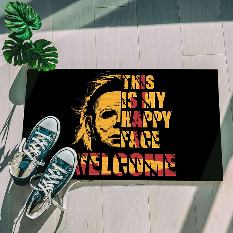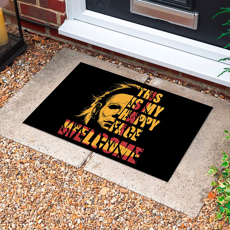 Let’s Shop Social Distance Michael Wearing Face Cover Myers Entrance Doormat – Michael This Is My Happy Face Myers Halloween Door Mat!