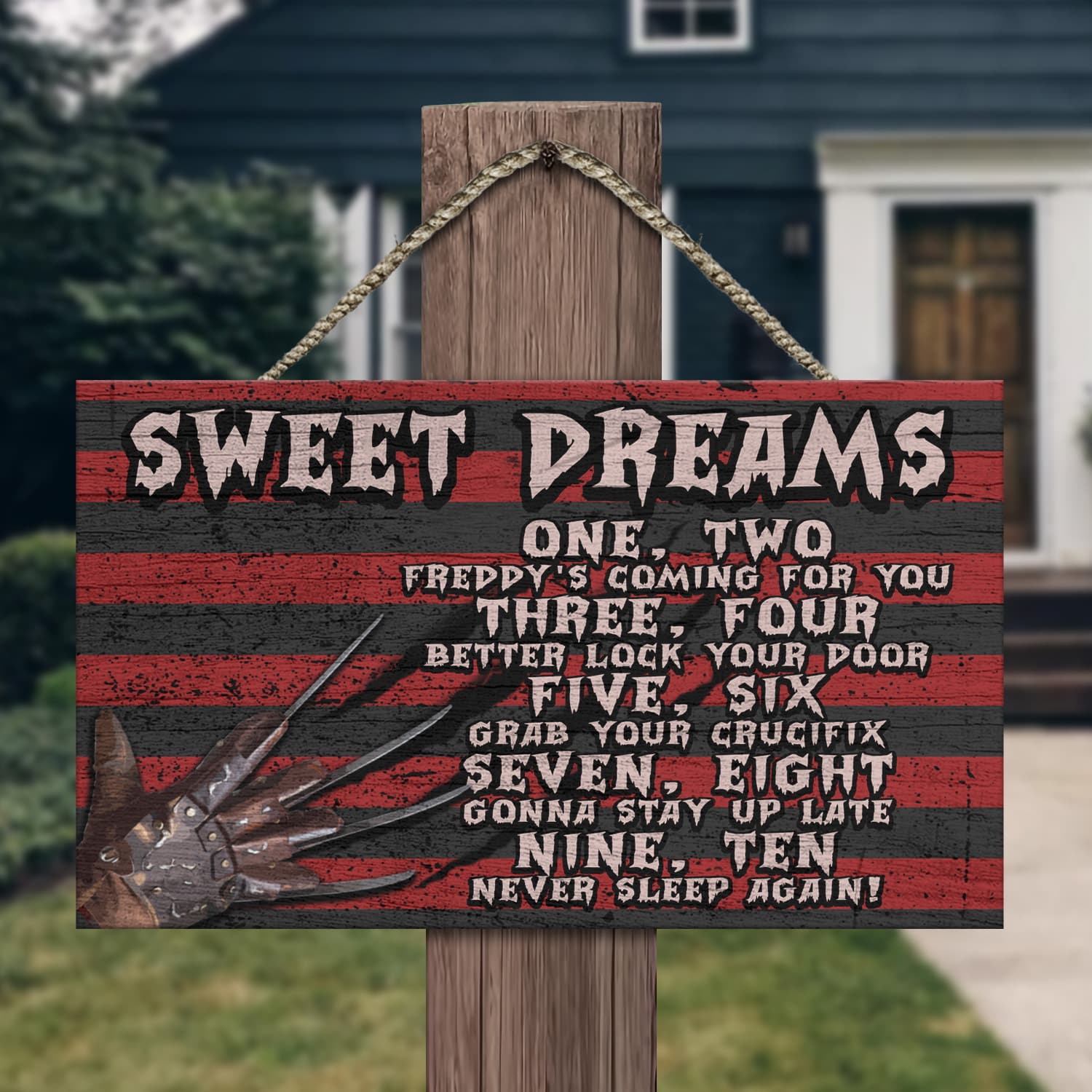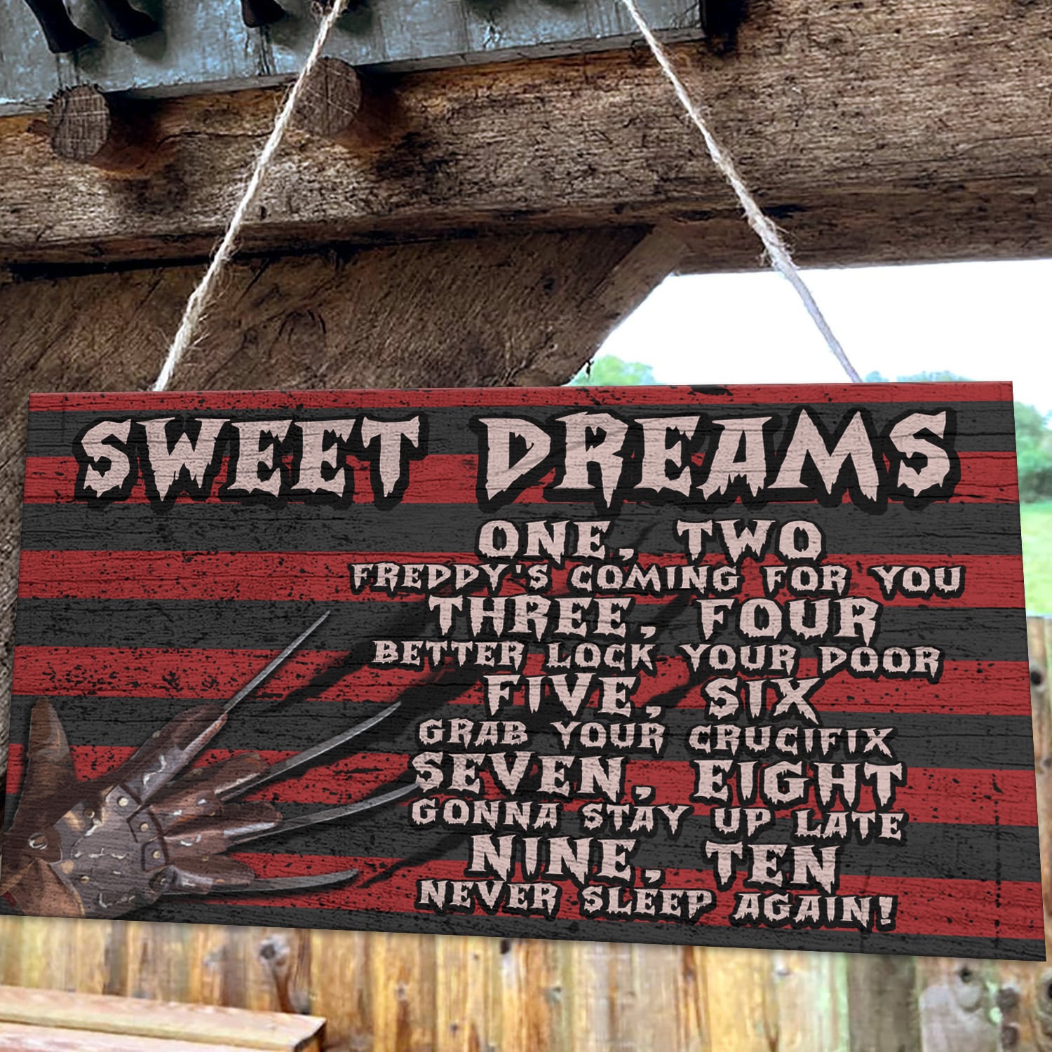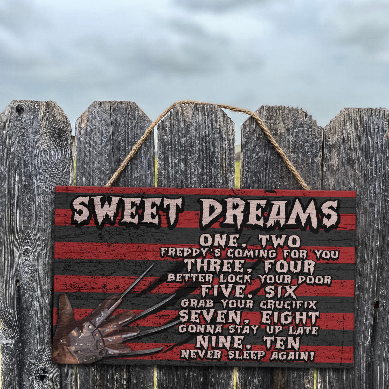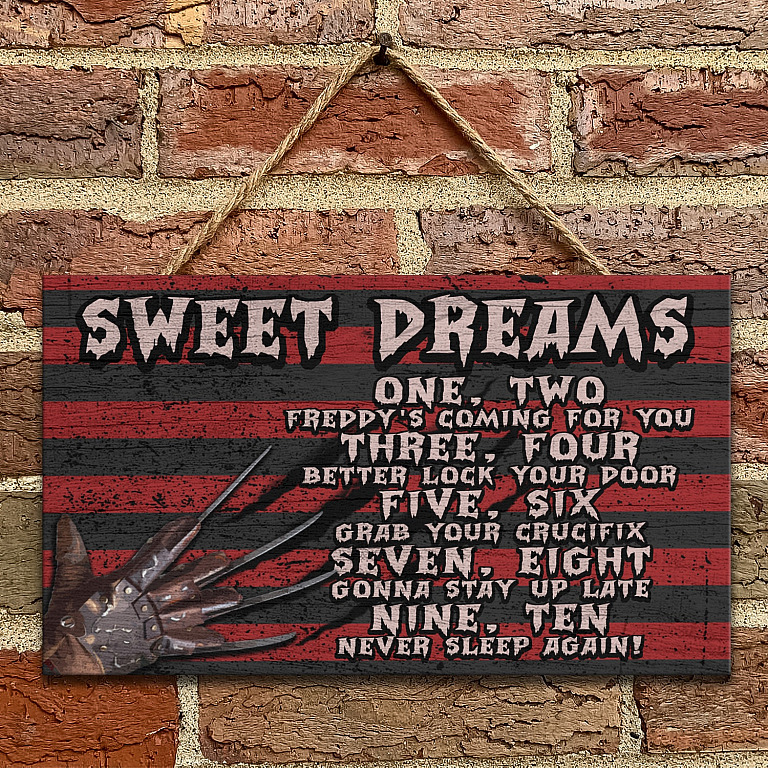 Are you spending too much time to find creative merchandise for you or suitable & special gifts for your mommy, your daddy, your son, your daughter, your children, your friends or someone you love? The struggle is over because we have various types of products such as Funny Halloween Door Sign, Scary Freddy Sweet Quote Dreams Saying Krueger Halloween Wooden Door Sign Hanger, Funny Horror Movies Quotes Meme Halloween Saying Door Sign, Nightmare on Halloween Dreams Door Sign, Scary Glove On Nightmare Halloween Door Sign which will make perfect presents for your beloveds. In order to make your present stand out, we have created lots of unique and awesome customized photo gifts & personalized designs.