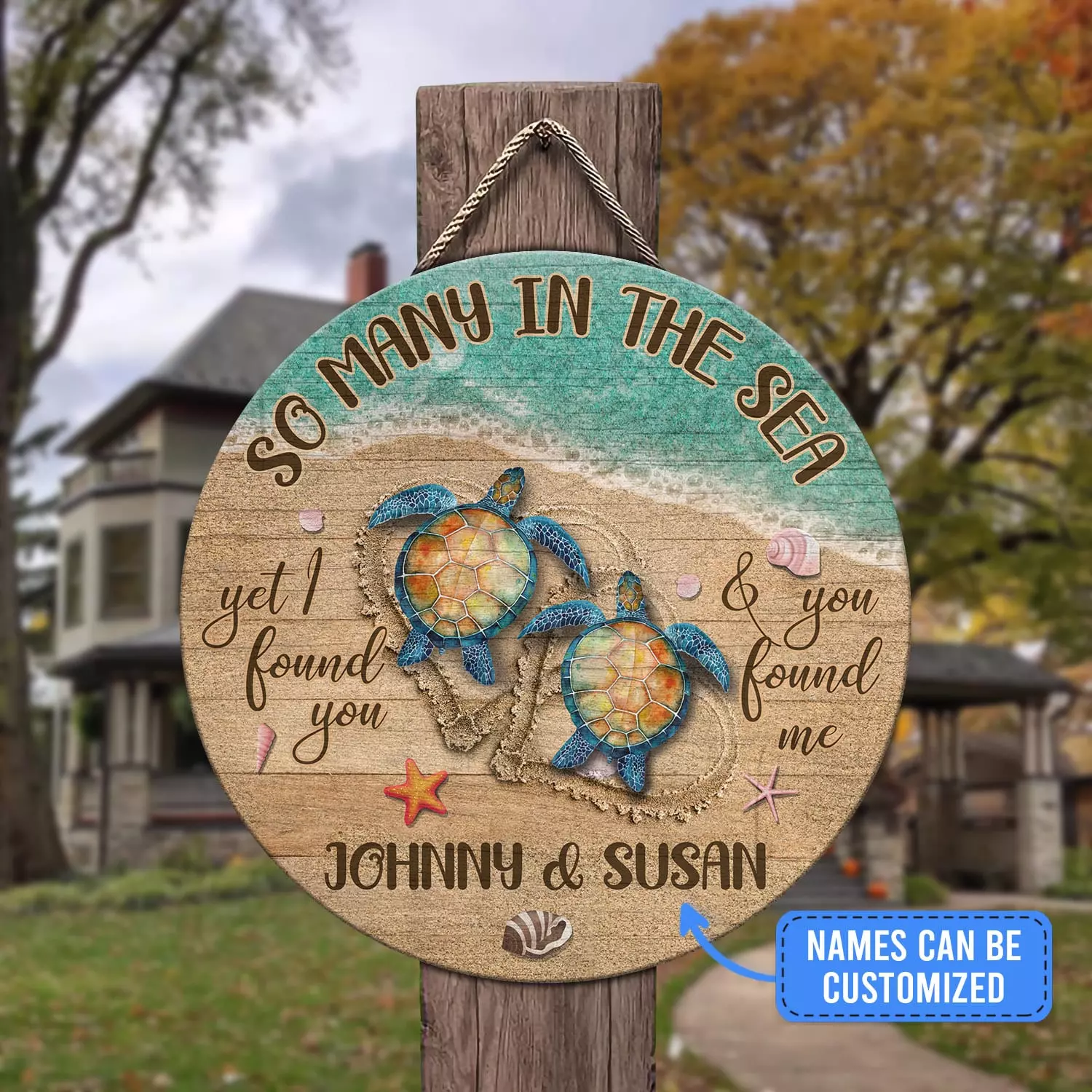 Let’s Shop Turtle Sign Personalized So Many in The Sea yet I Found You Decorative Circle Wooden Door Sign – Front Porch Sign!