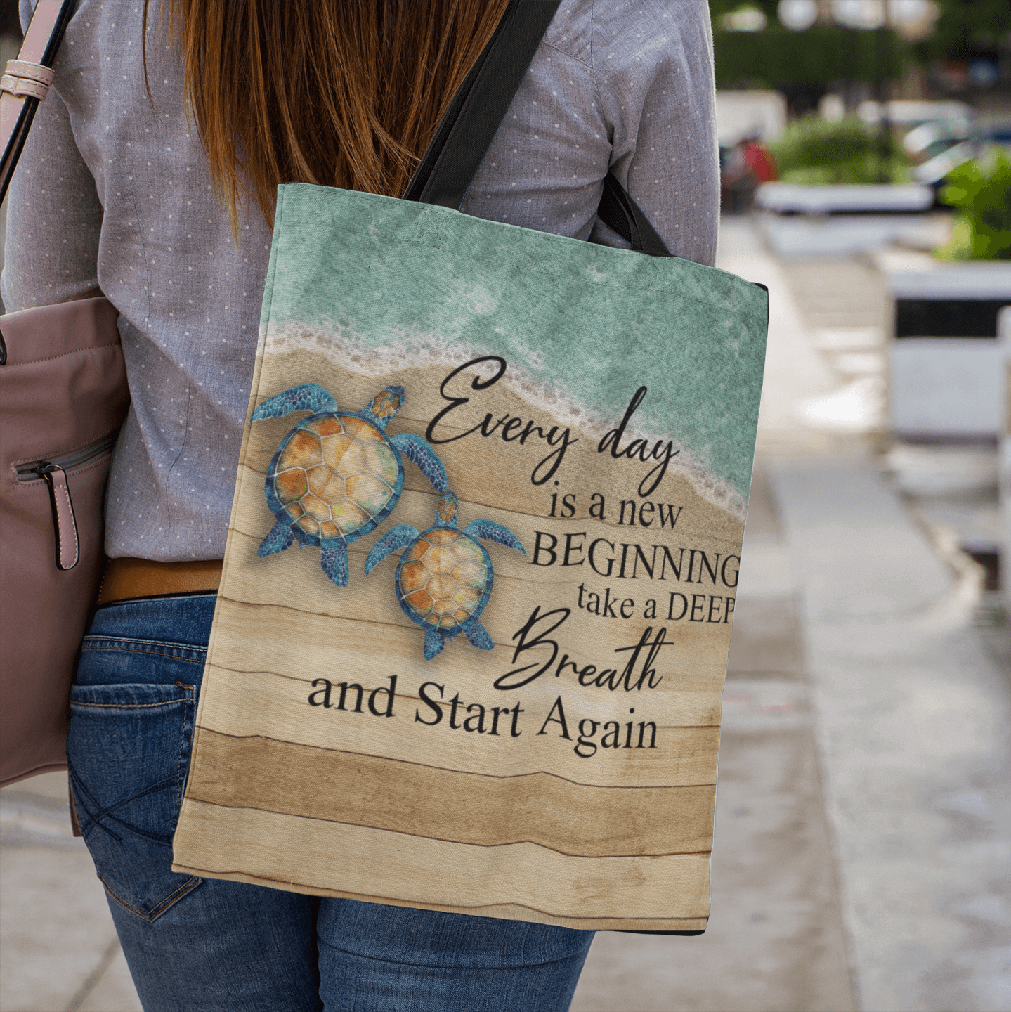 Let’s Shop Sea Turtle Every Day Is A New Beginning Take A Deep Breath And Start Again All Over Print Tote – Shoulder Bag!