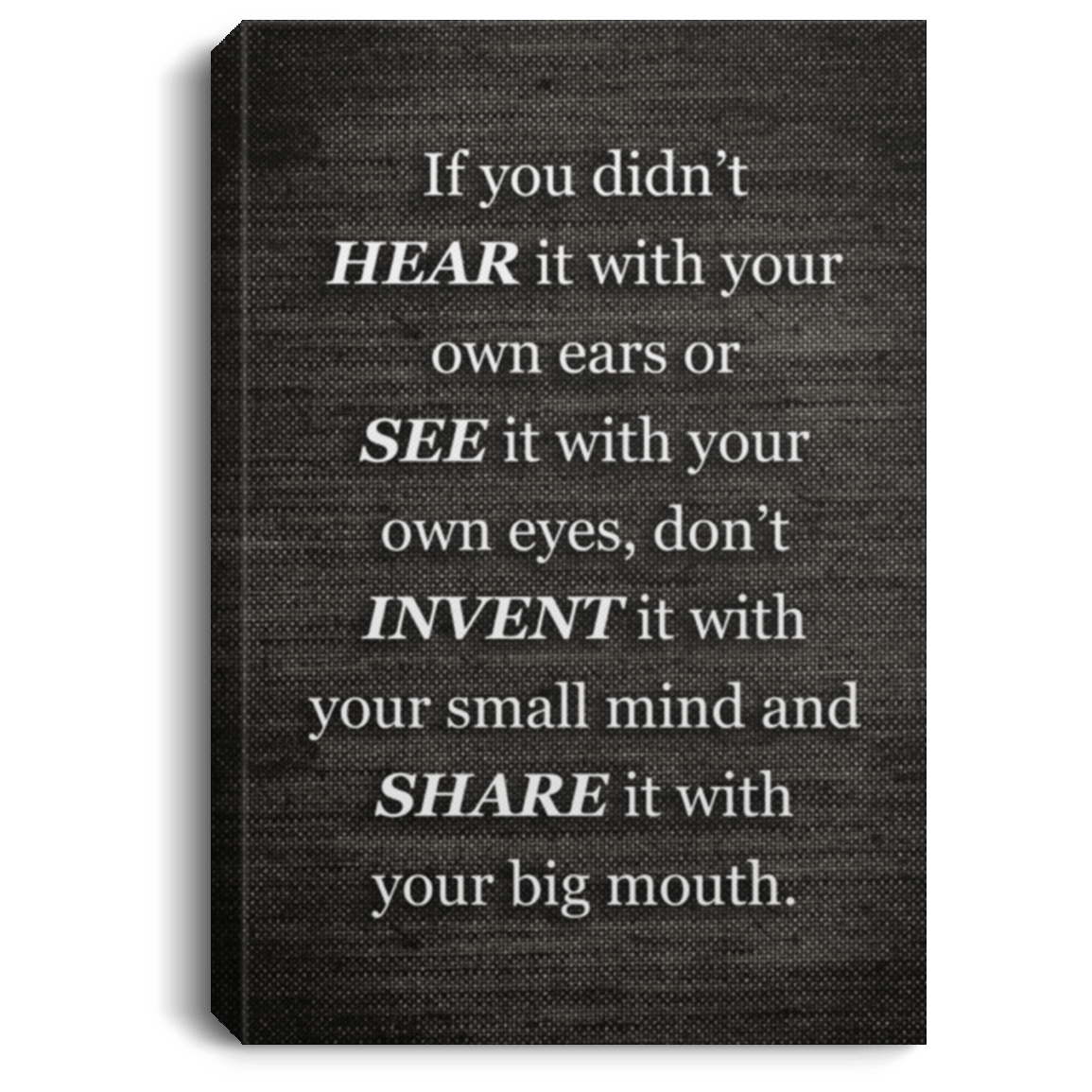 If You Didn't Hear It With Your Ears Or See With Your Eyes Don't Invent Framed Canvas - Unframed Poster