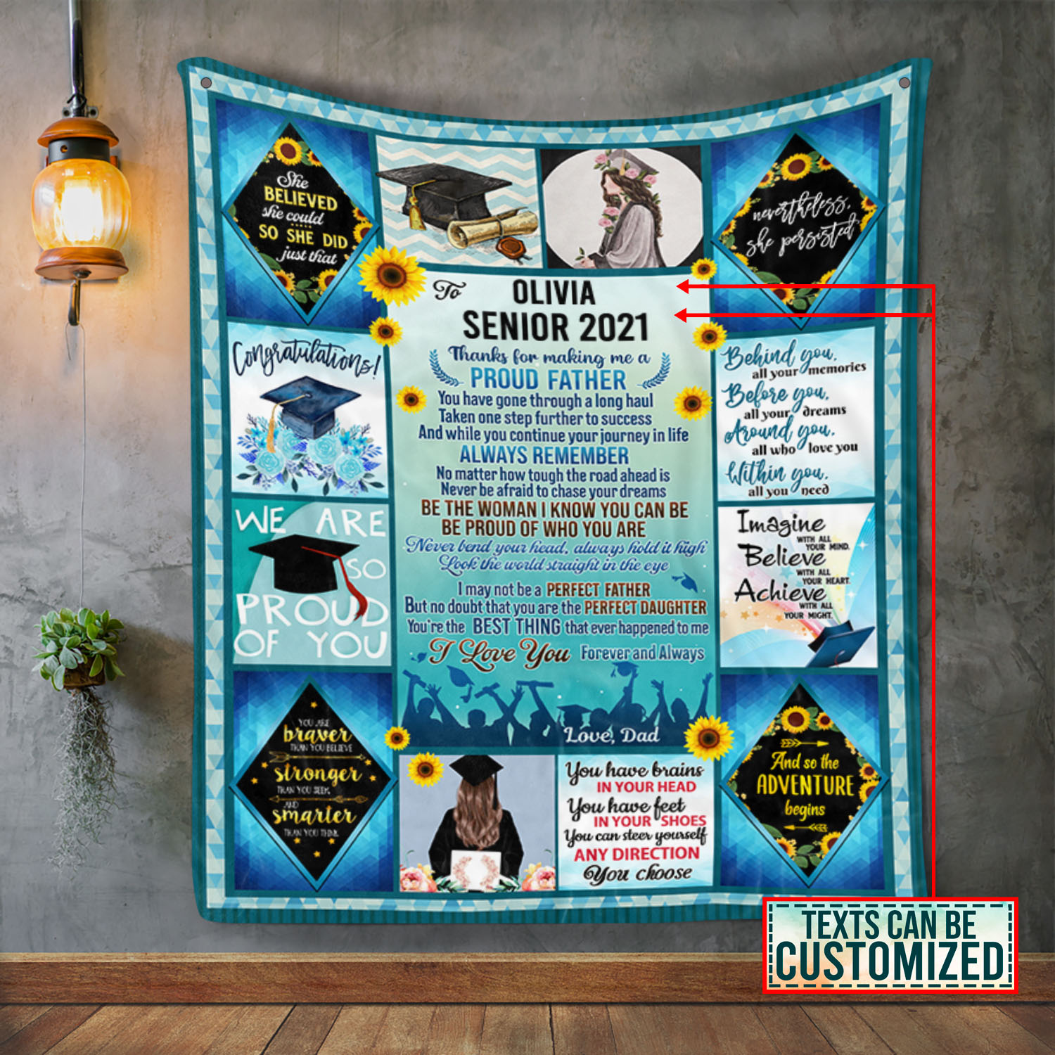 Are you spending too much time to find creative merchandise for you or suitable & special gifts for your mommy, your daddy, your son, your daughter, your children, your friends or someone you love? The struggle is over because we have various Custom Senior 2021 Gift, Senior Graduation Gifts, To My Daughter Senior 2020 Fleece Blanket, Daughter Graduation Quotes, Letter from Dad to Daughter Graduation, Daughter Graduation Gift, Father to Daughter Graduation Gifts, Proud of My Daughter Graduation which will make perfect presents for your beloveds. In order to make your present stand out, we have created lots of unique and awesome customized photo gifts & personalized designs.