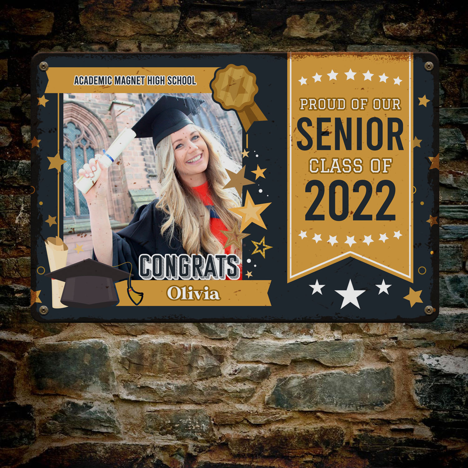 Let’s Shop Personalized Congrats Proud Of Our Senior Class Of 2022 Graduation Decorative Metal Sign!