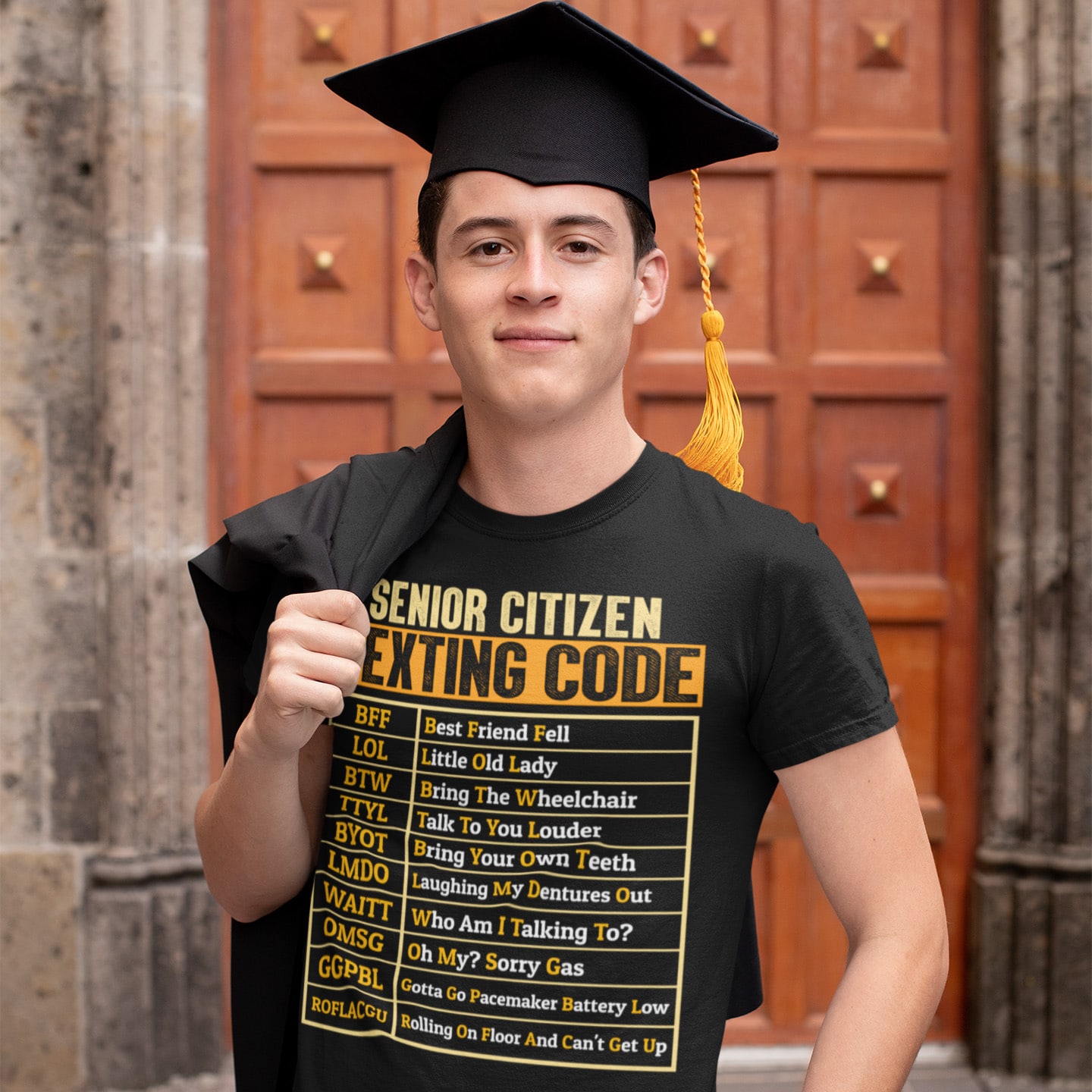 Senior Citizen Texting Code Funny T-Shirt – Texting For Senior Shirt – Funny Senior Graduation Shirt