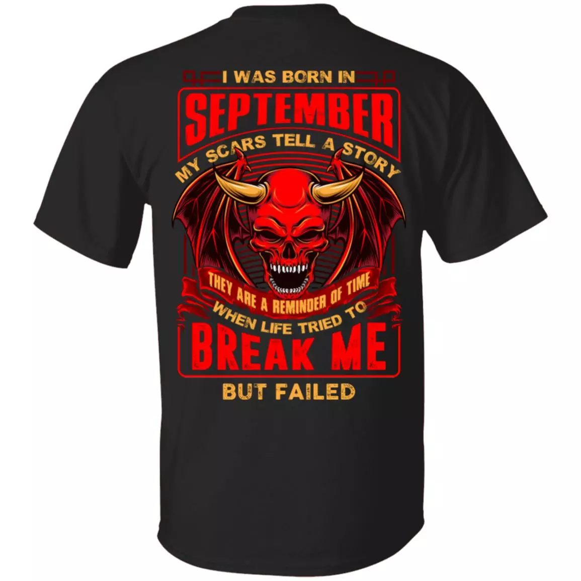 I Was Born In September My Scars Tell Me A Story They Are Reminder Of Time Print On Back T-Shirt – Birthday Month Shirt
