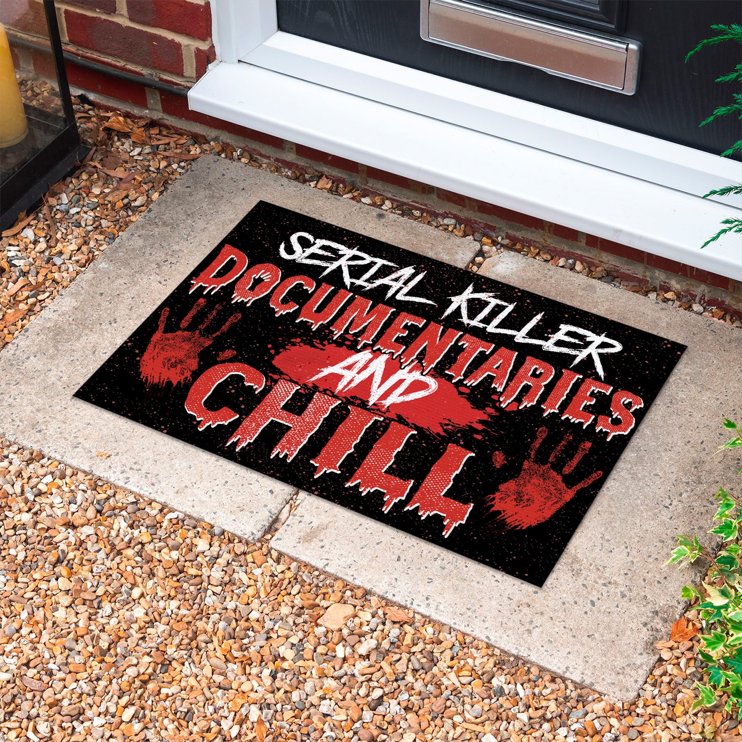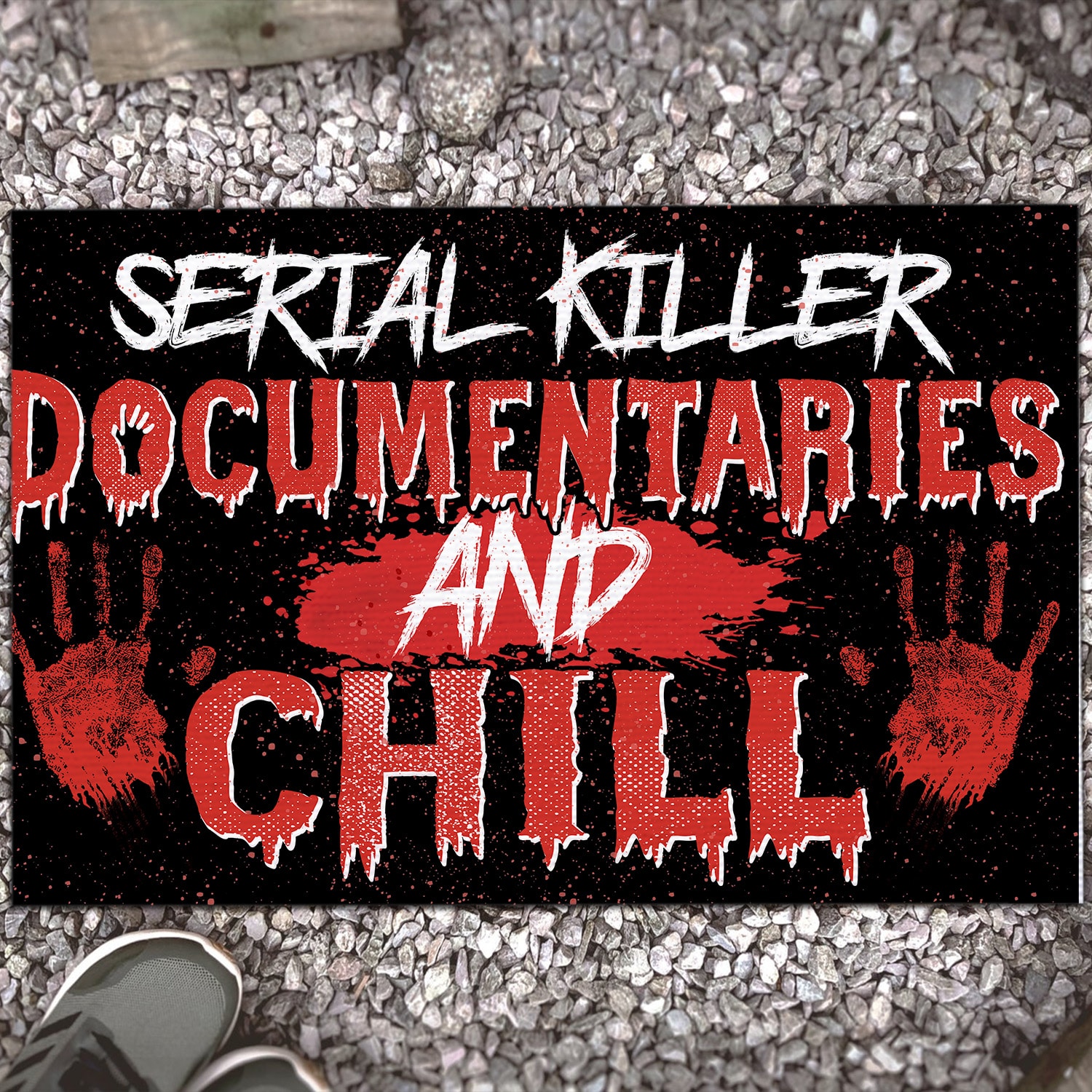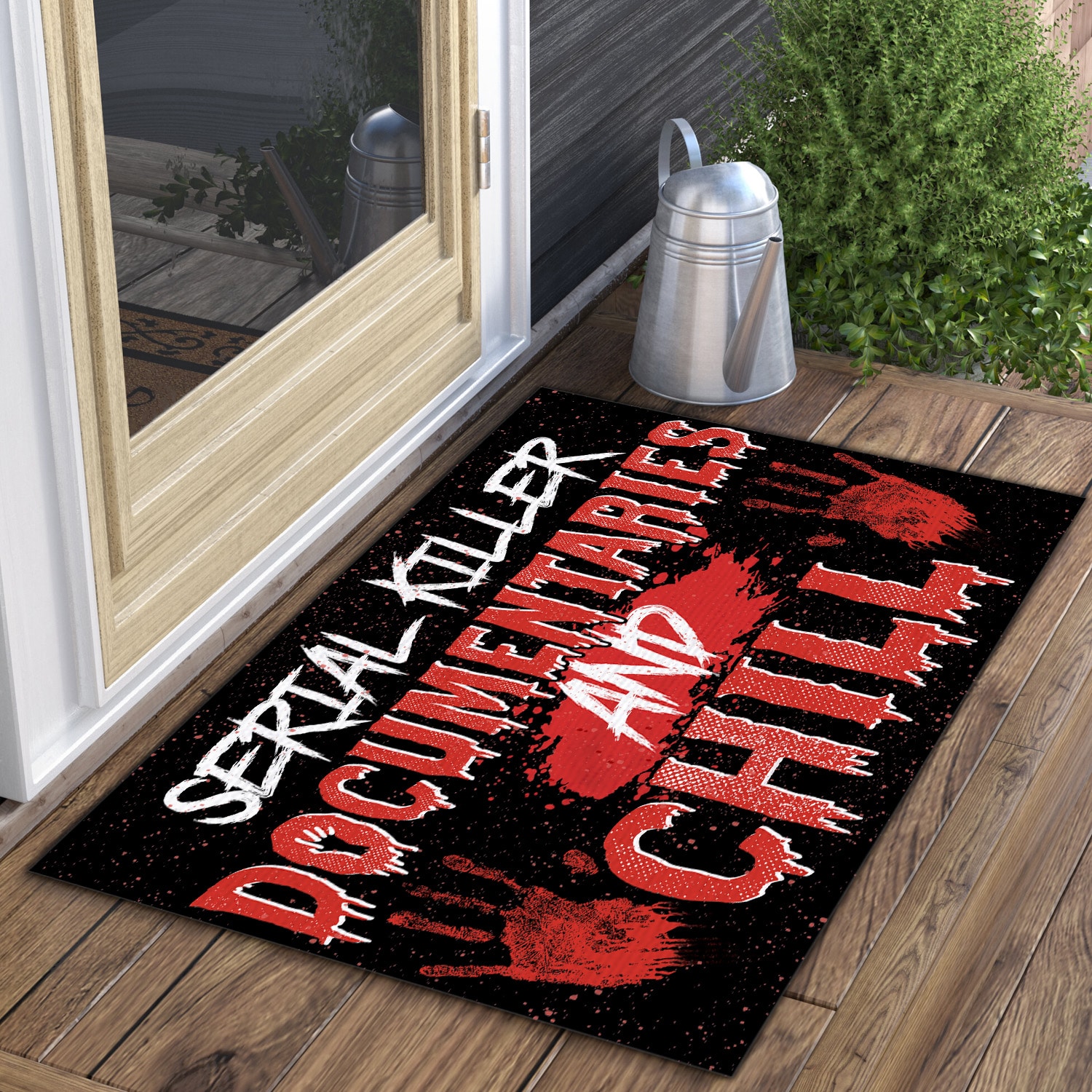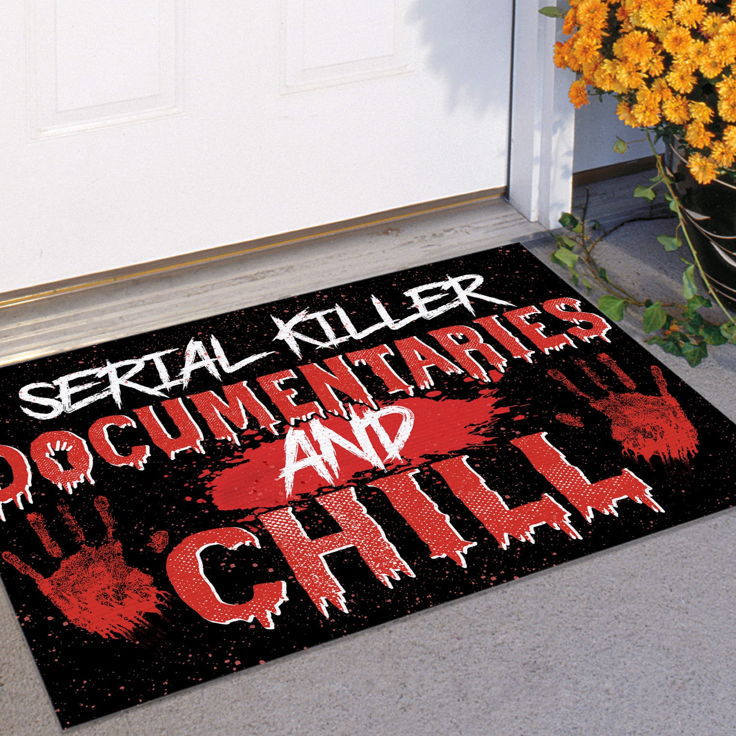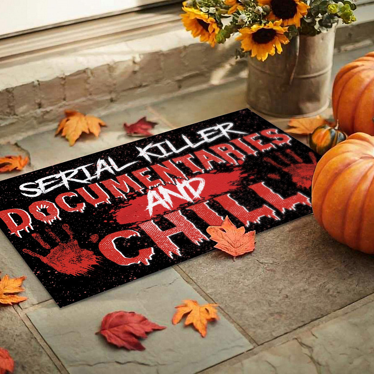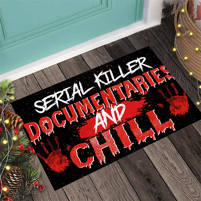 Let’s Shop Serial Killer Documentaries and Chill Indoor Outdoor Doormat – Scary Halloween Doormat!