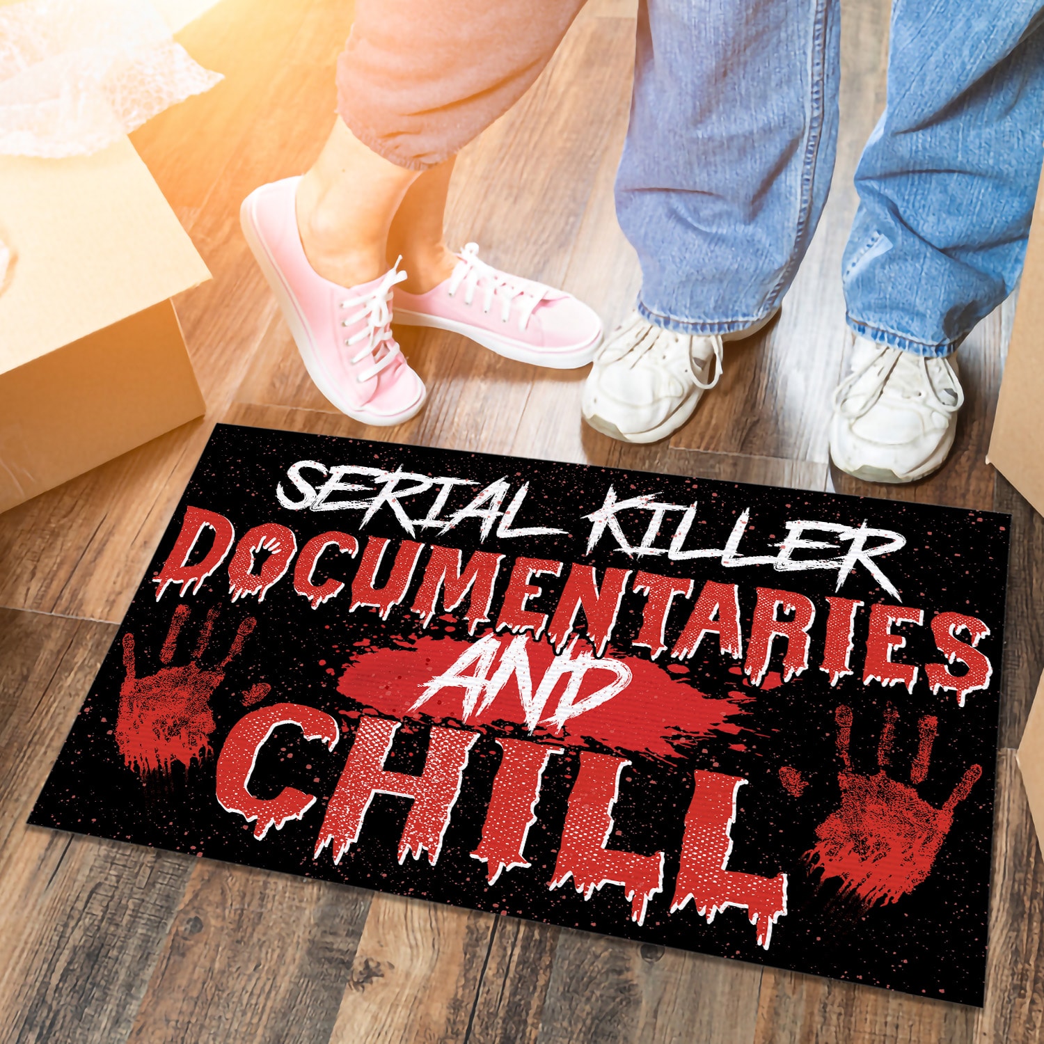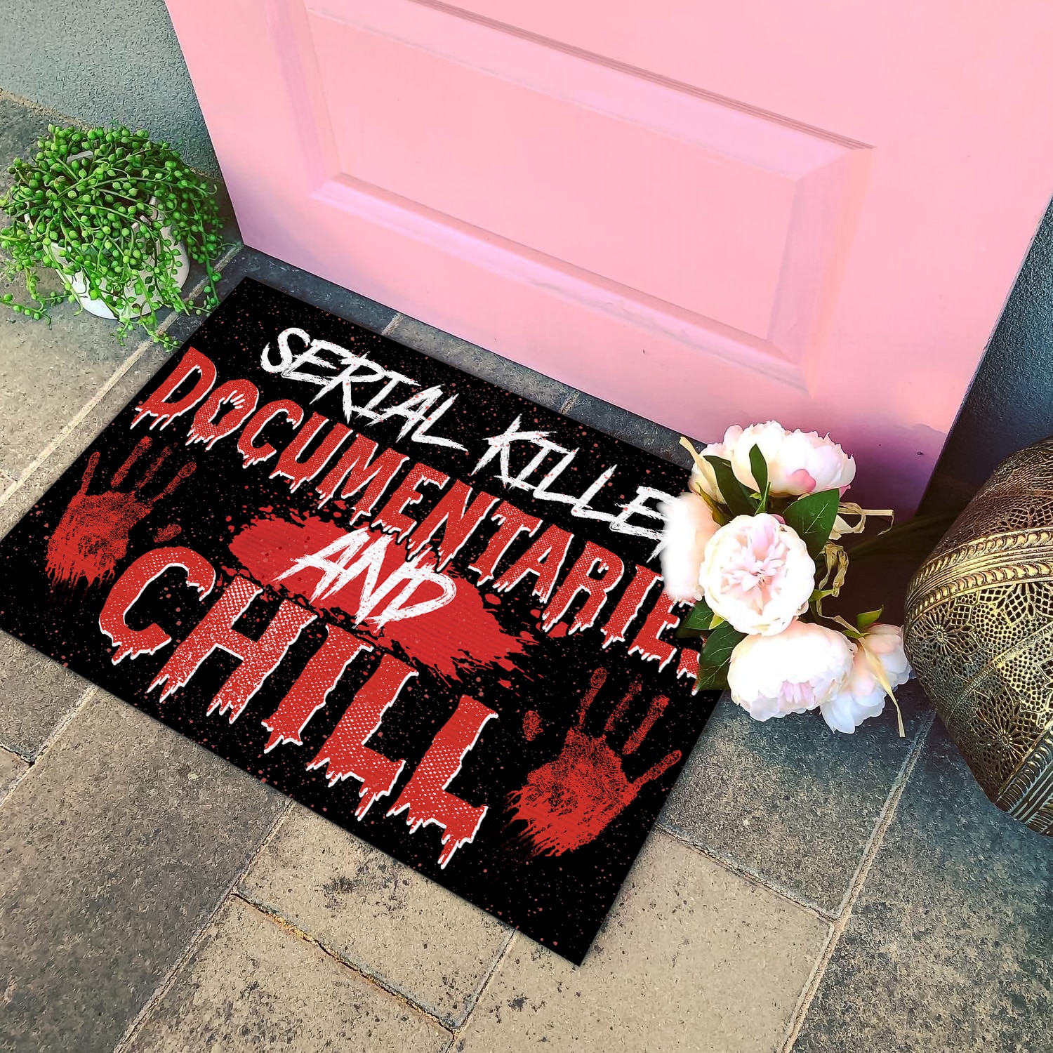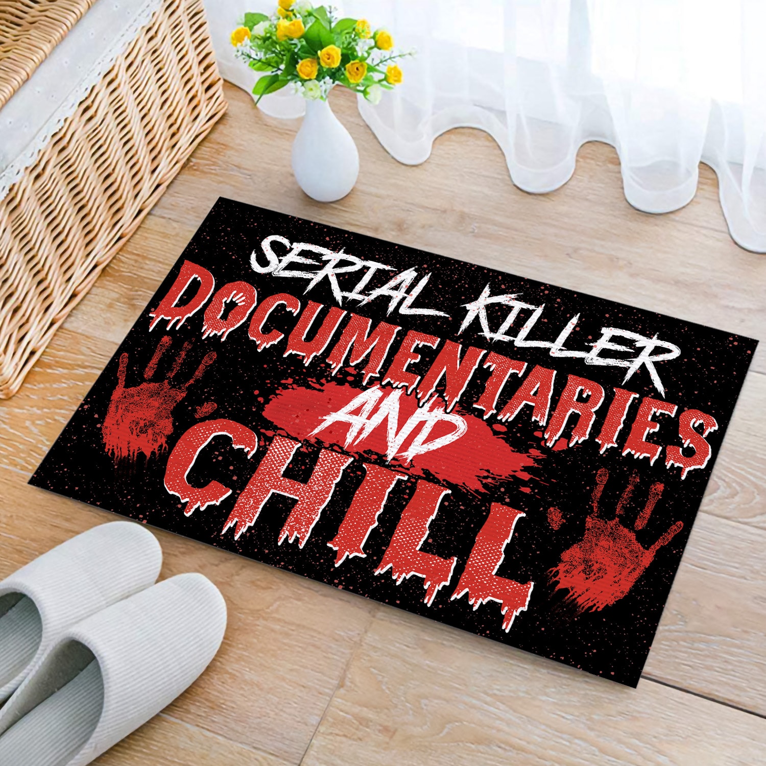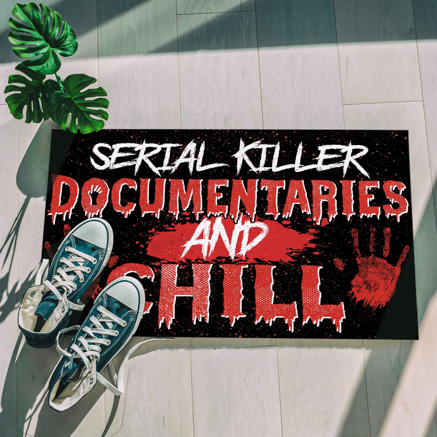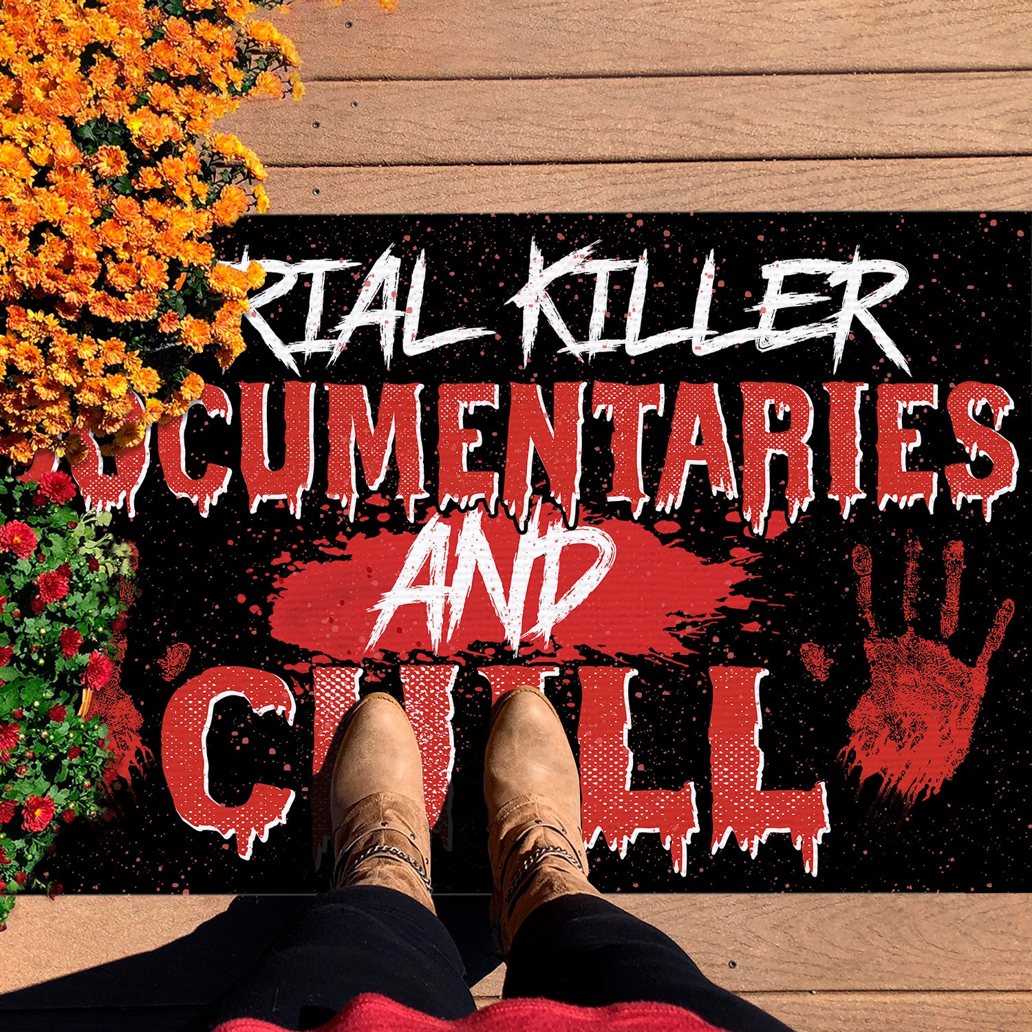 Let’s Shop Serial Killer Documentaries and Chill Indoor Outdoor Doormat – Scary Halloween Doormat!