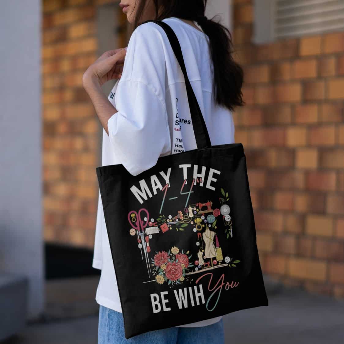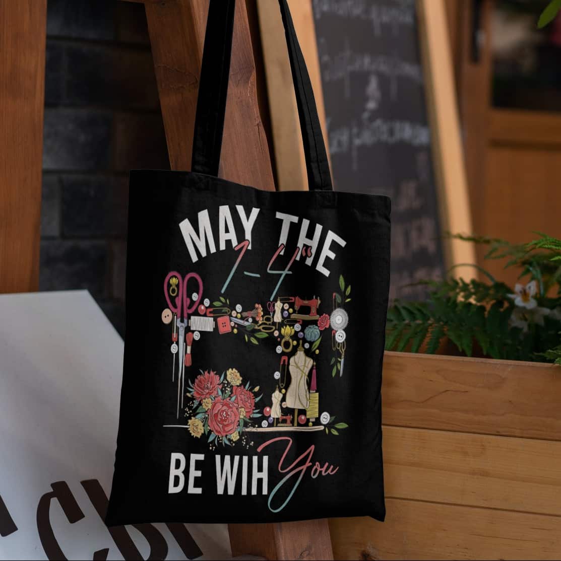 Let’s Shop May The 1/4 Be With You All Over Print Tote Bag – Funny Sewing Machine Quilting Shoulder Bag!