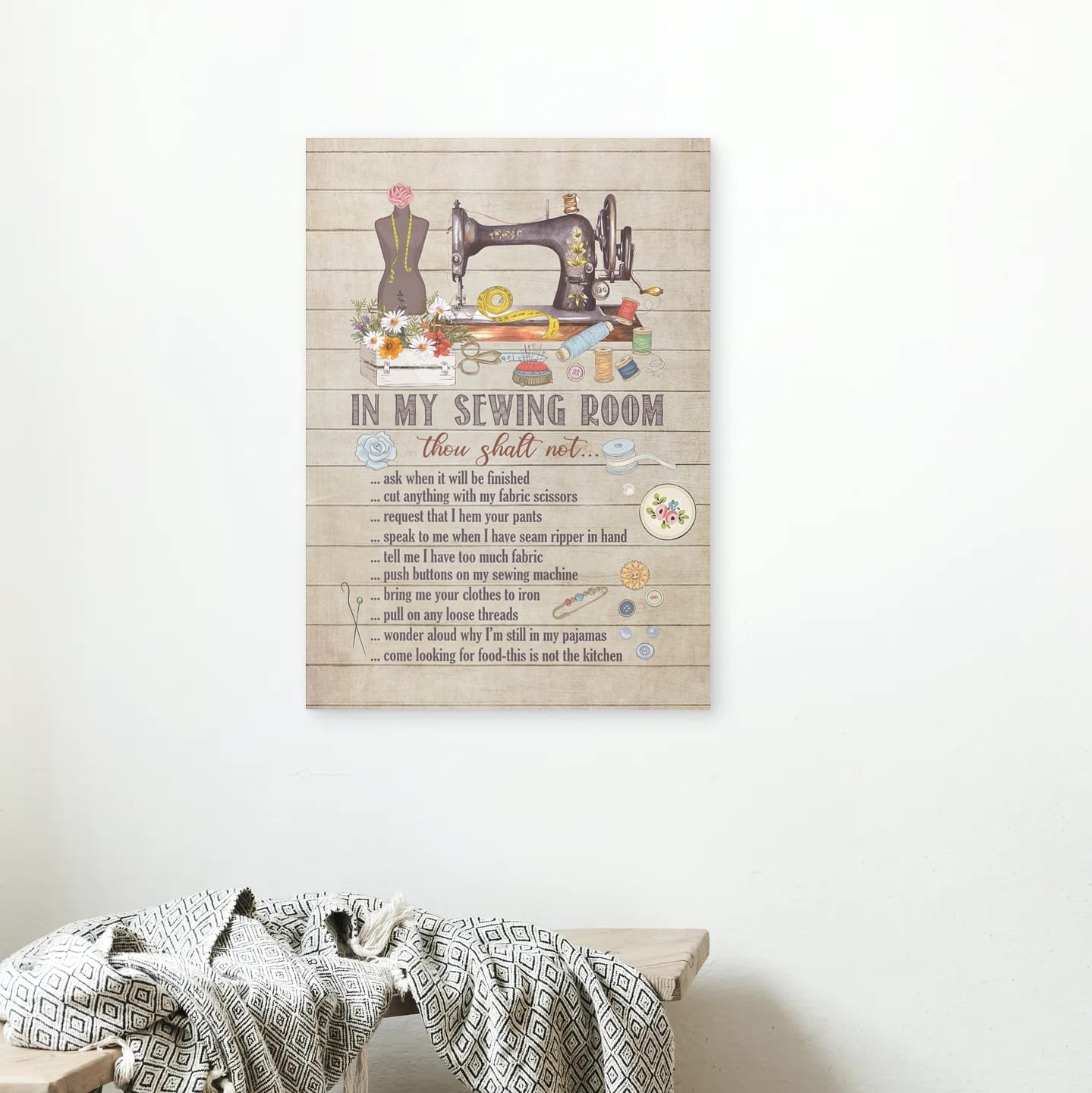 Let’s Shop In My Sewing Room Thou Shalt Not Ask When It Will Be Finish Wrapped Framed Canvas Prints – Unframed Poster!