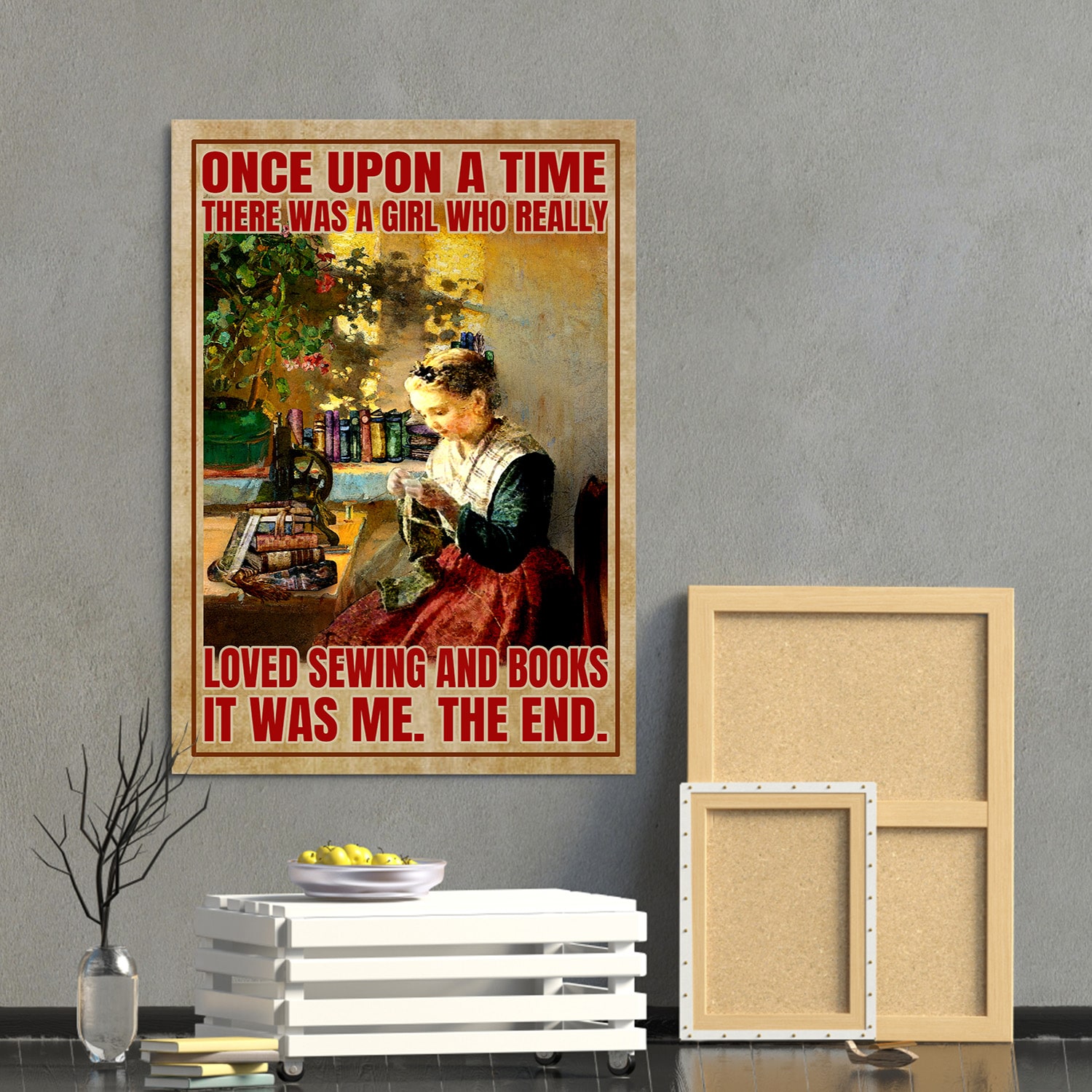 Let’s Shop Once Upon A Time There Was A Girl Who Really Loved Sewing And Books Wrapped Framed Canvas Prints – Unframed Poster!
