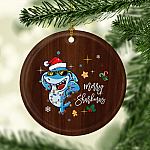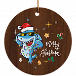 Shop Merry Sharkmas Santa Shark Christmas Ornament Keepsake – Holiday Flat Circle Porcelain Ceramic Ornament.