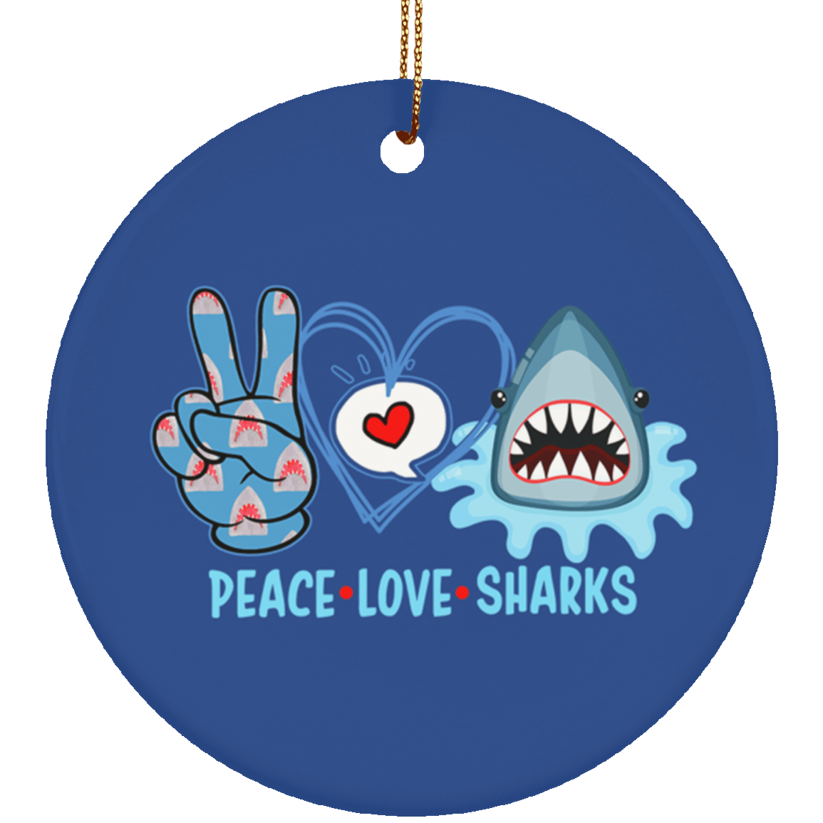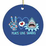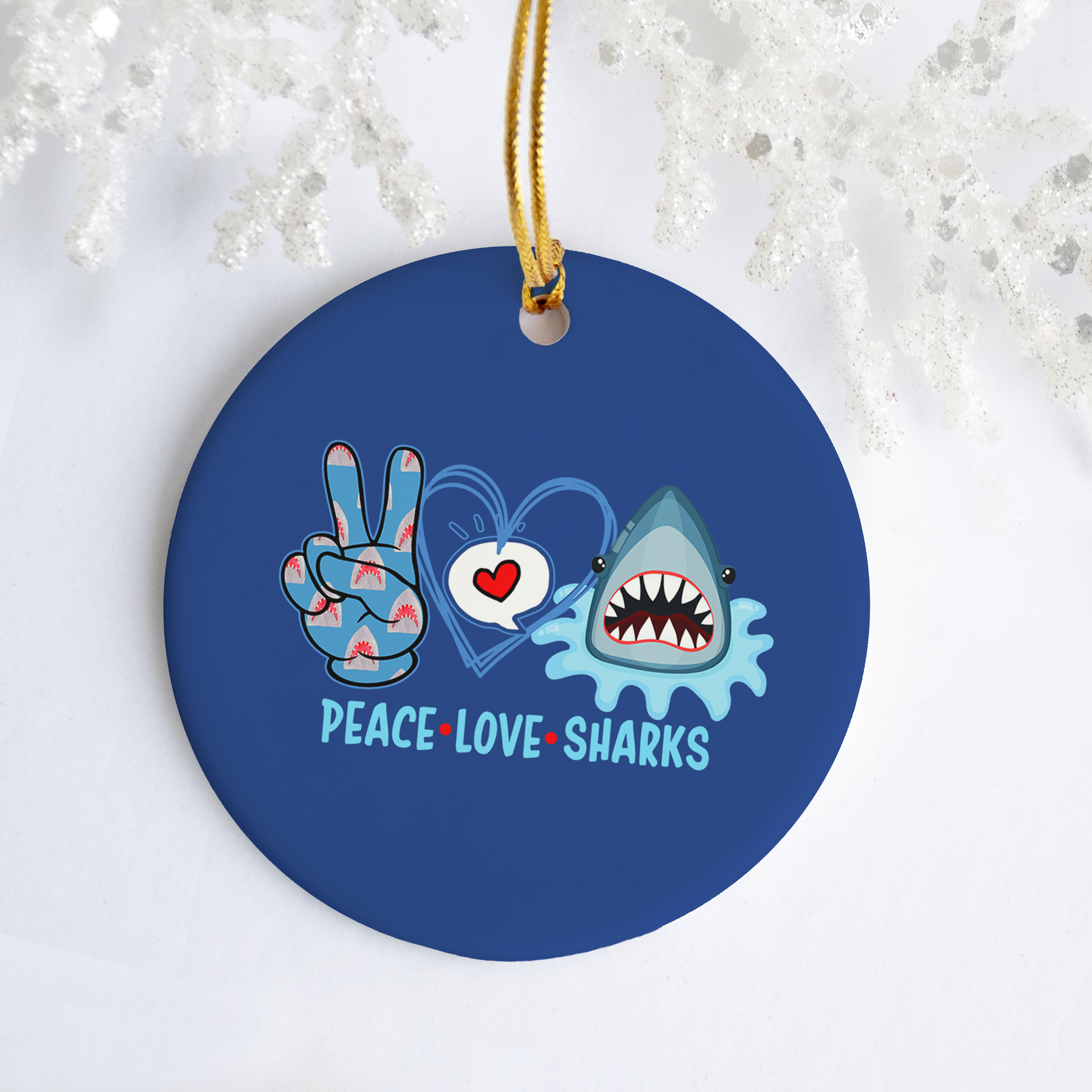 Shop Peace Love Sharks Ornament Keepsake – Circle Porcelain Ceramic Ornament.