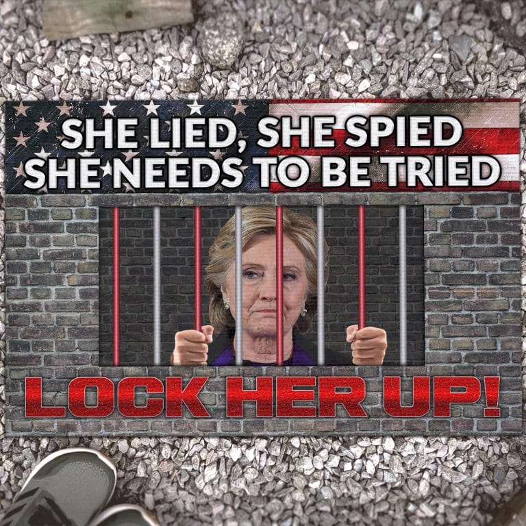 Let’s Shop She Lied She Spied She Needs To Tried Lock Her Up Hillary Entrance Indoor Outdoor Decorative Doormat – Hillary Prison Doormat!