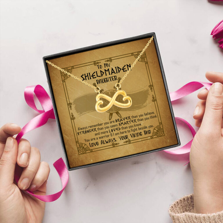 Let’s Shop Dad To My Shieldmaiden Daughter Always Remember You Are Braver Than You Believe Infinity Heart Pendant Necklace!