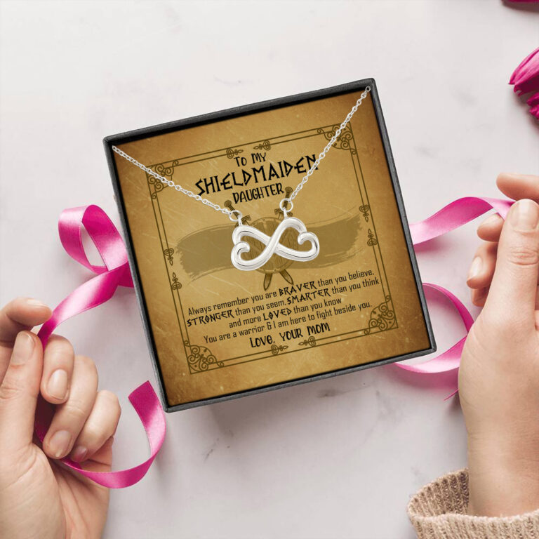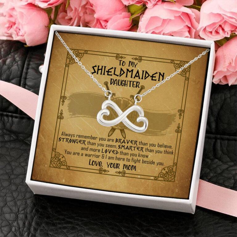 Let’s Shop Mom To My Shieldmaiden Daughter Always Remember You Are Braver Than You Believe Infinity Heart Pendant Necklace!