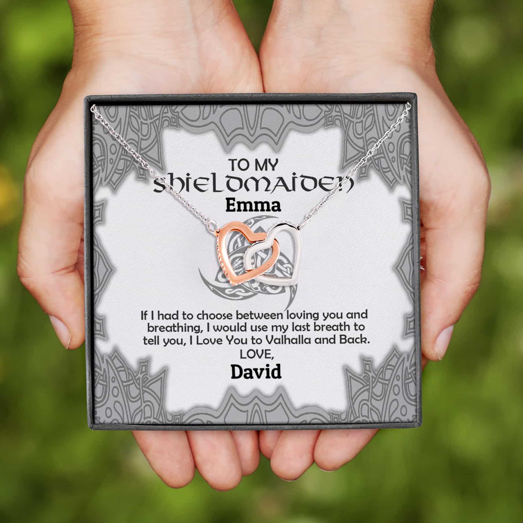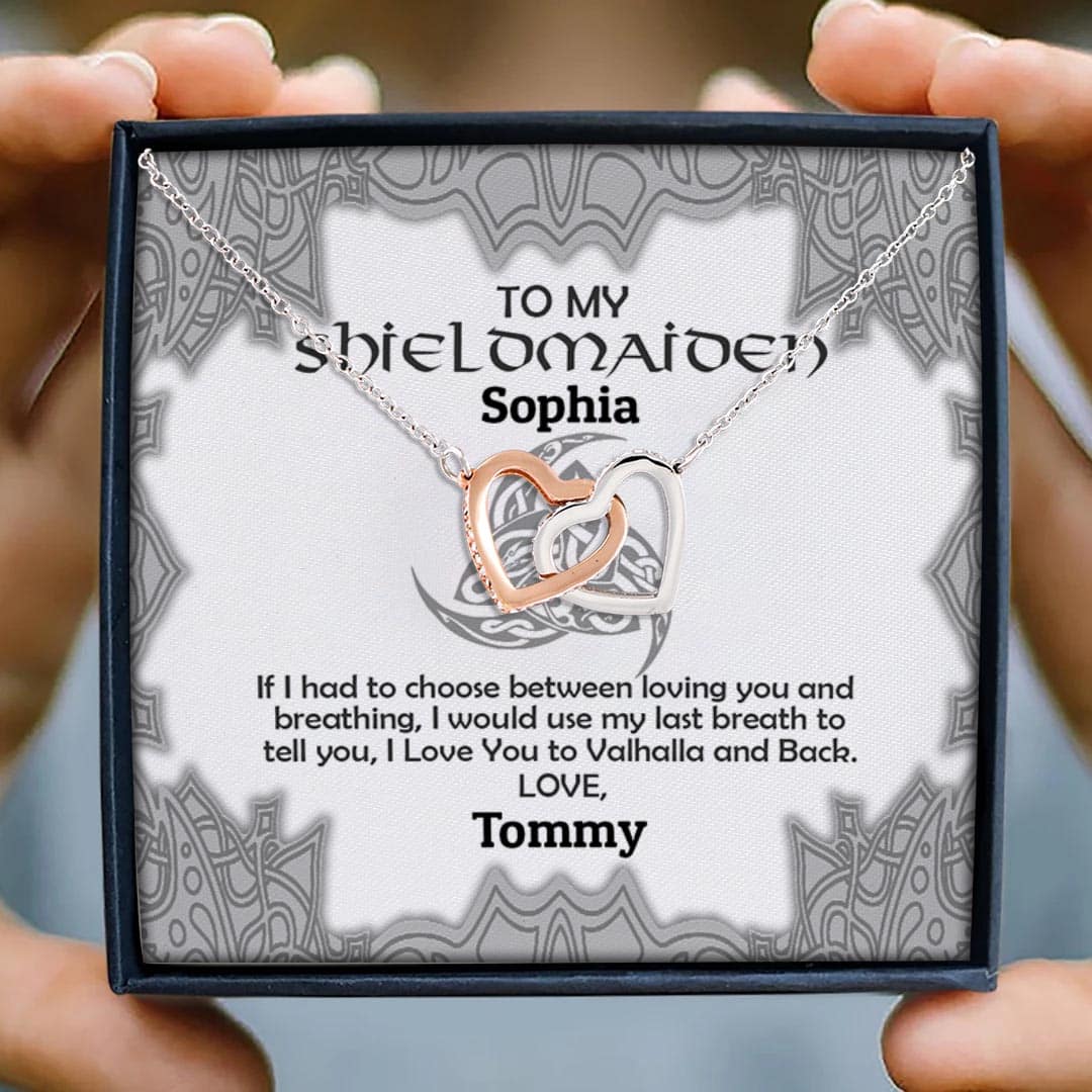 Let’s Shop Personalized Name to My Shieldmaiden if I Had to Choose Between Loving You Interlocking Heart Necklace!