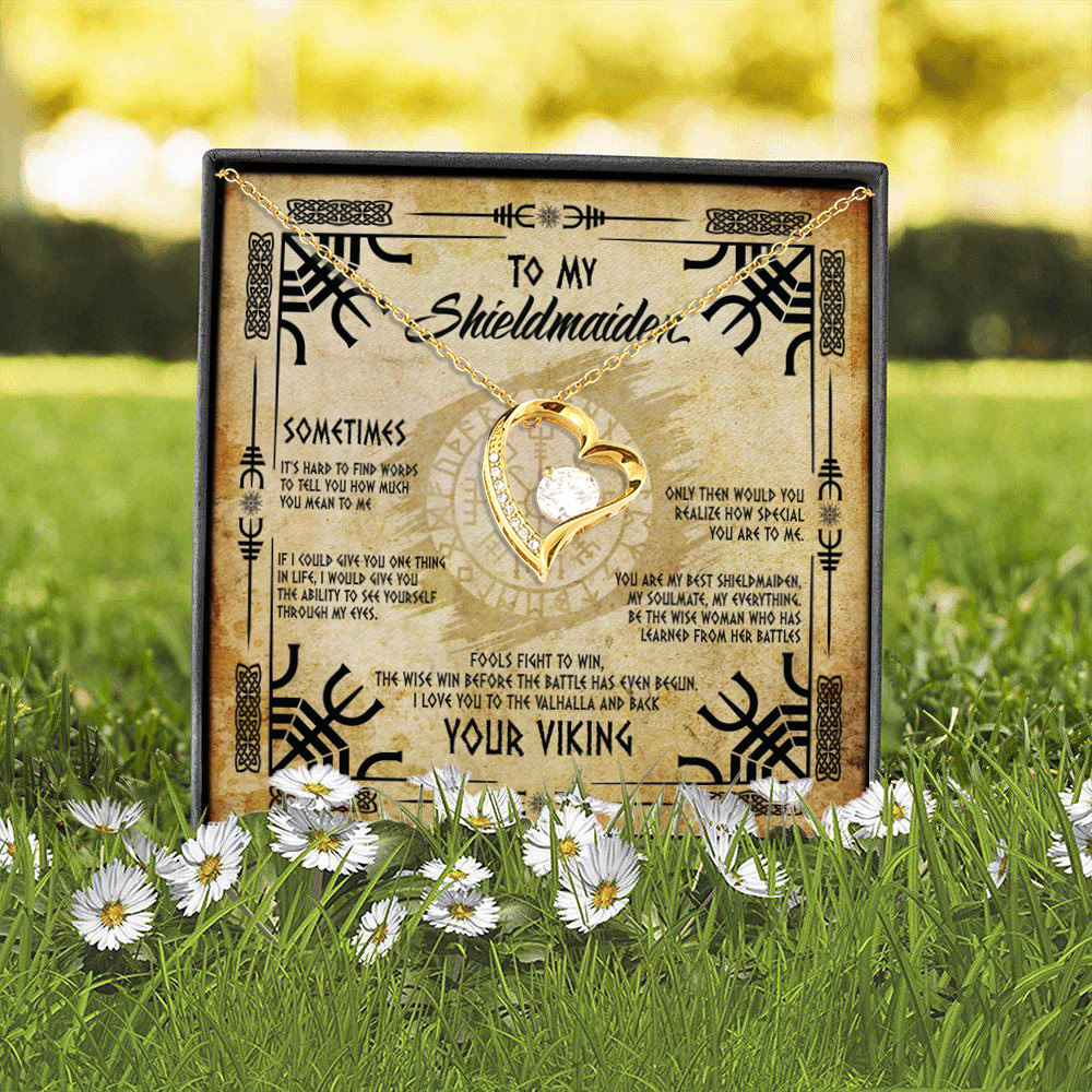 Let’s Shop To My Shieldmaiden I Love You to Valhalla And Back Forever Love Heart Pendant Necklace – Viking Wife Girlfriend Necklace!