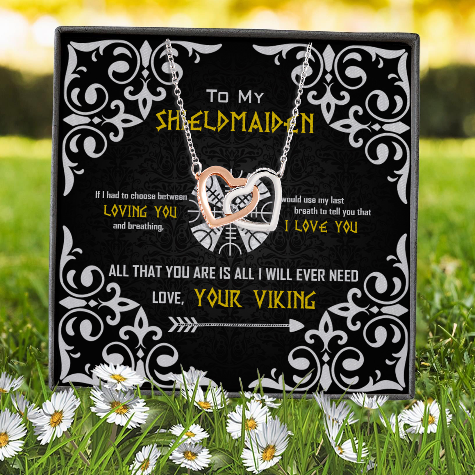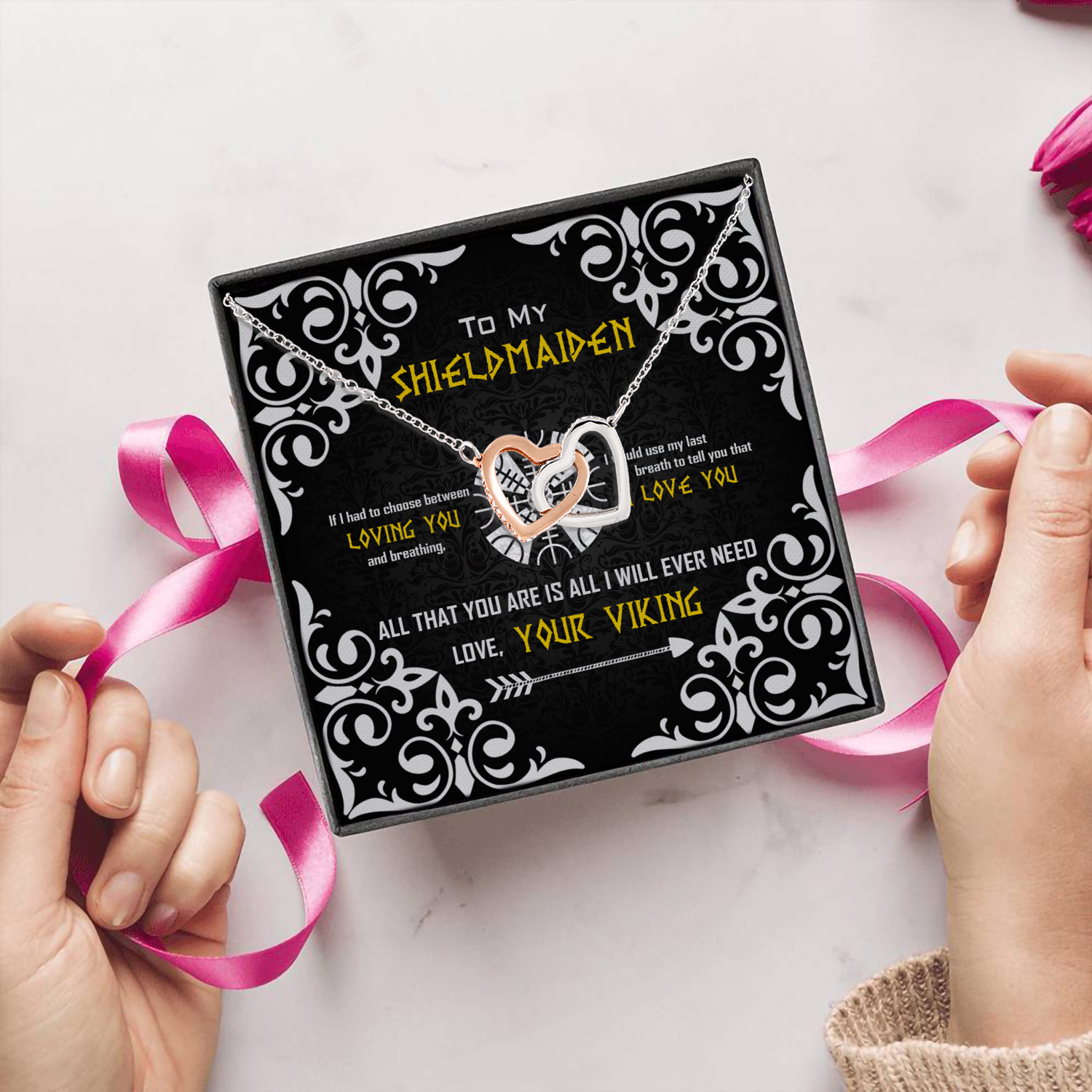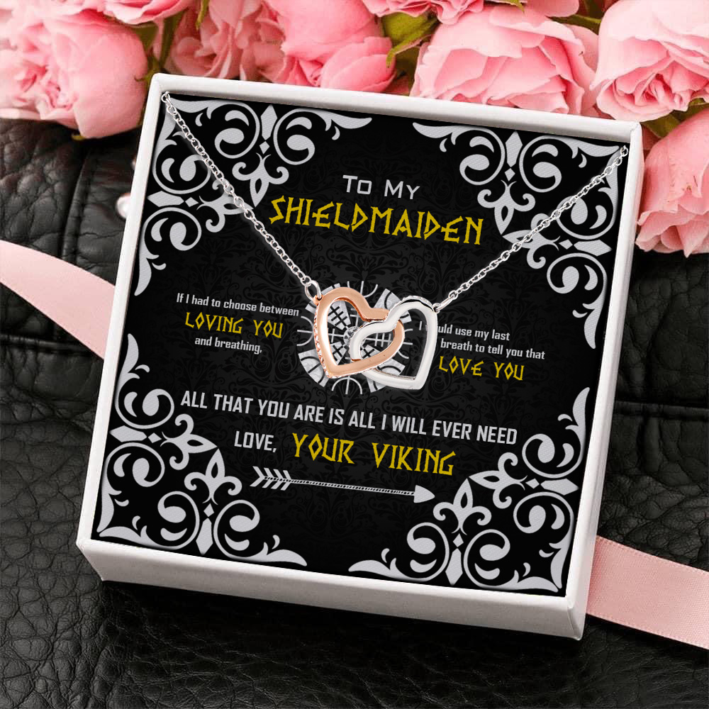 Let’s Shop To My Shieldmaiden If I Had To Choose Between Loving You And Breathing Joined Interlocking Hearts Pendant Necklace!