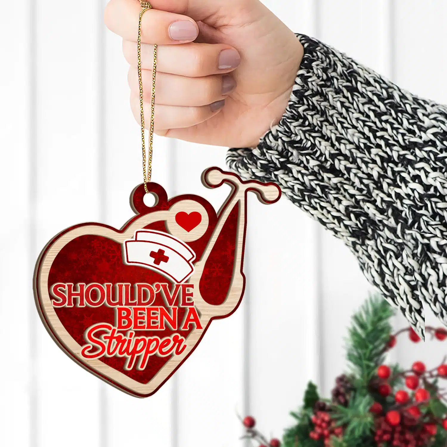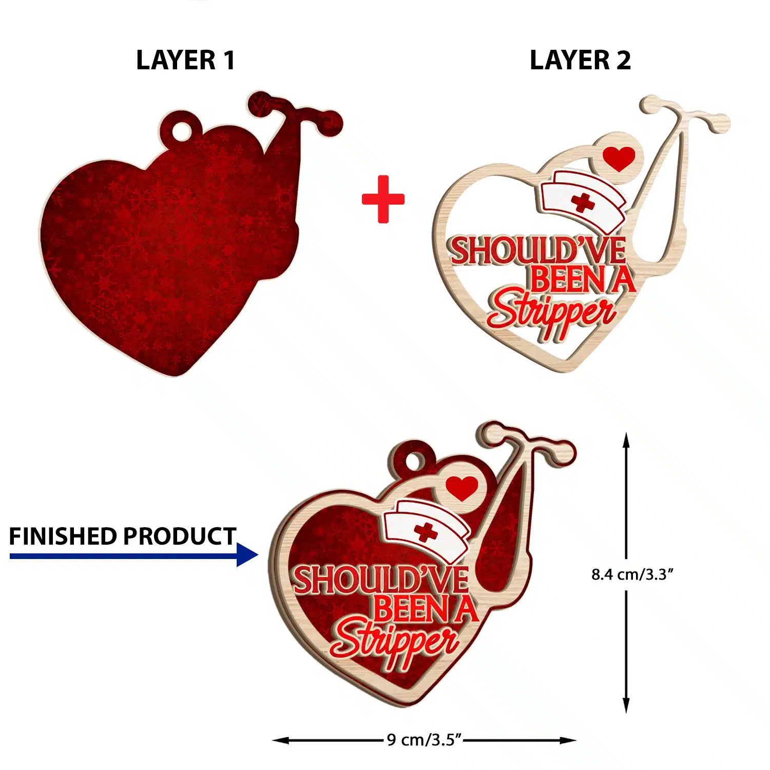 Let’s Shop Should’ve Been A Stripper Funny Nurse 2 Layered Wood Christmas Ornament Keepsake – Registered Nurse Christmas Gifts!