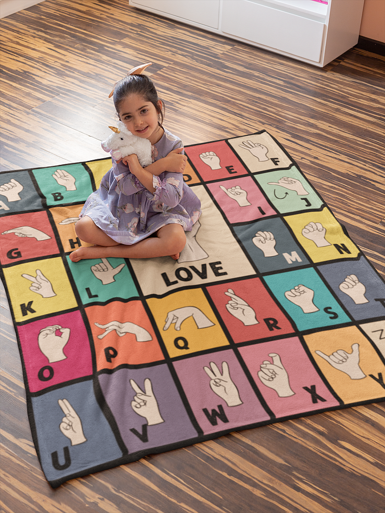 Sign Language Alphabet Love Fleece Blanket – Sherpa Blanket – Woven Blanket