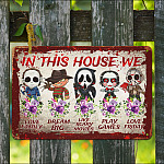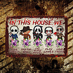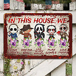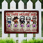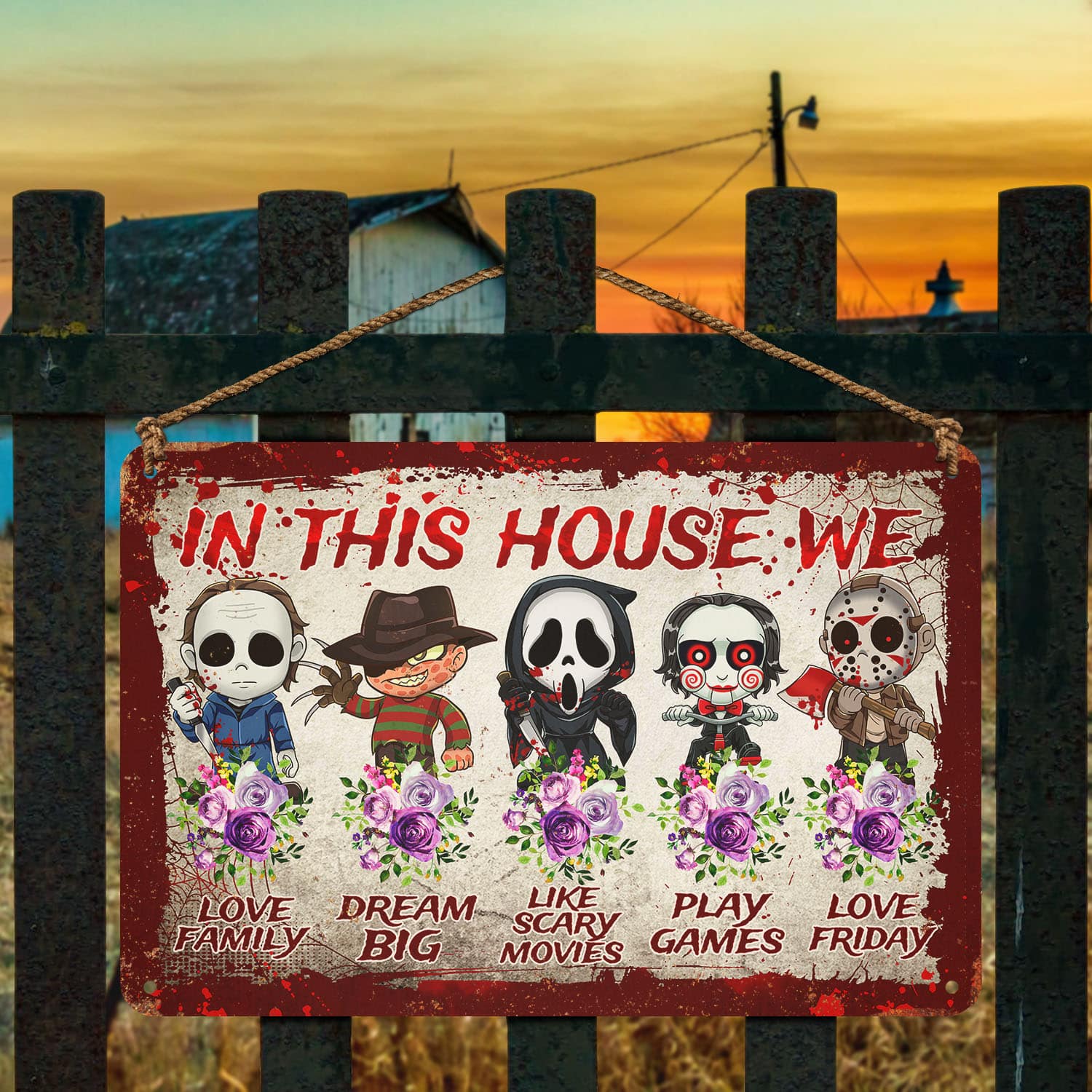 Let’s Shop In This House We Love Family Dream Big Like Scary Movies Horror Movie Characters Outdoor Decorative Metal Sign!