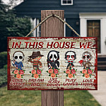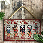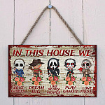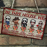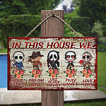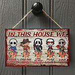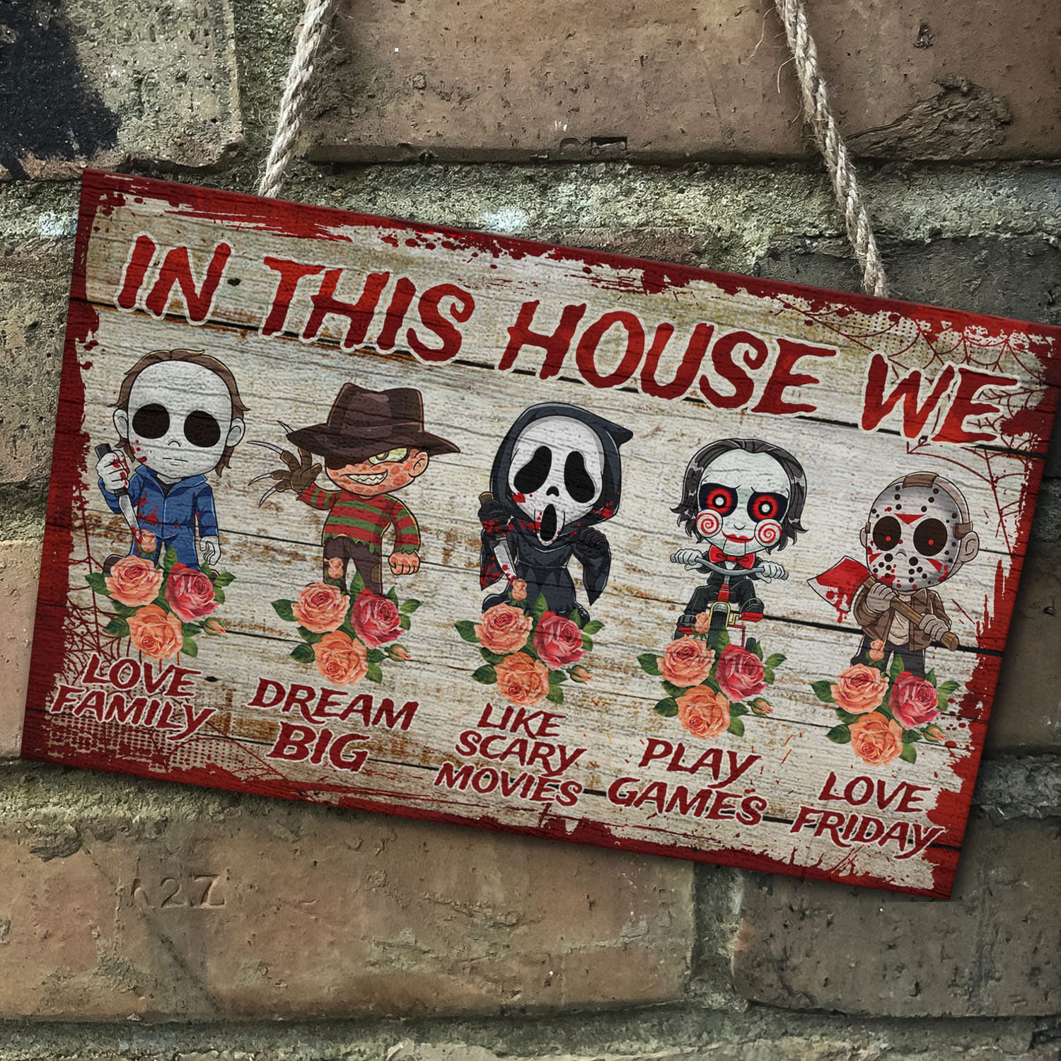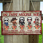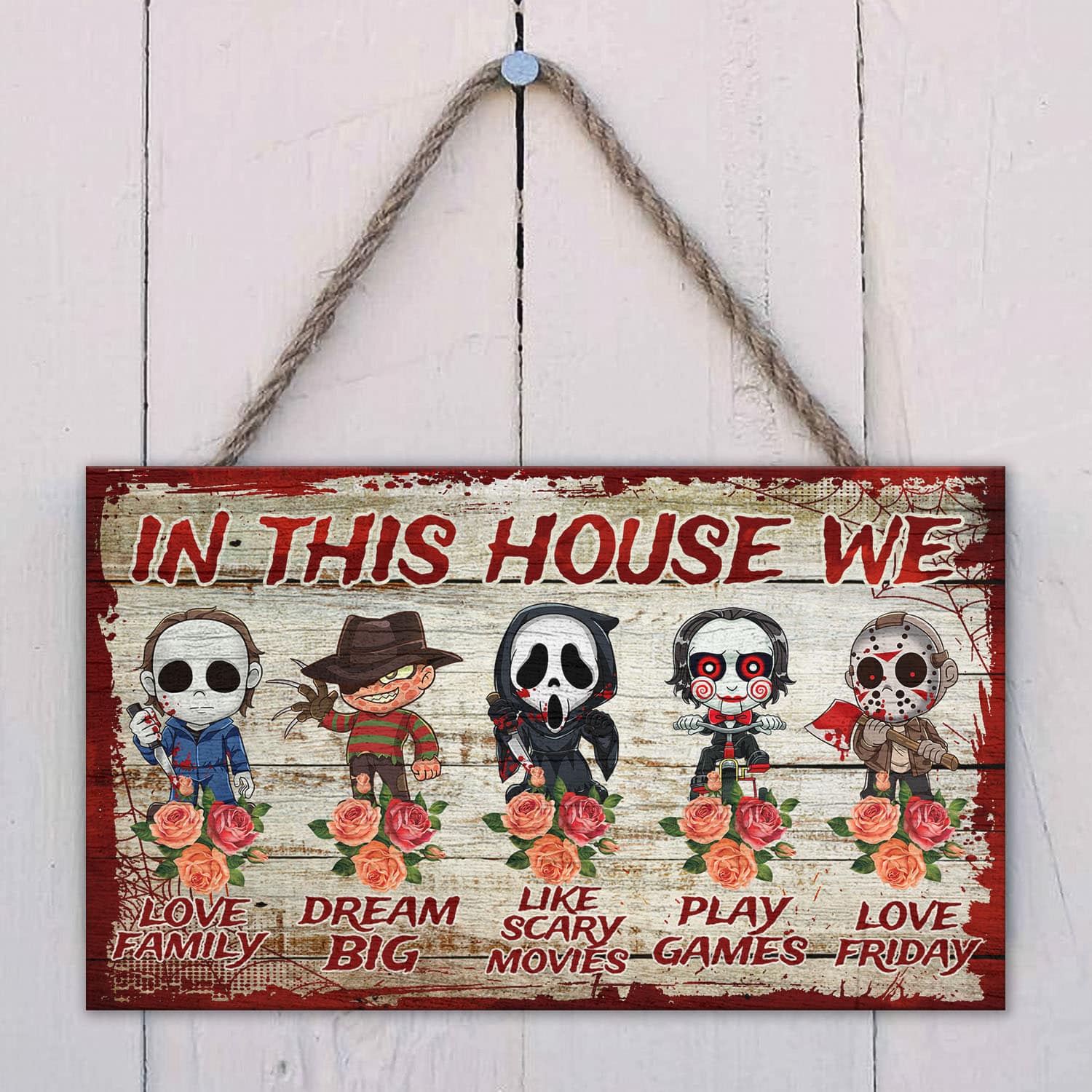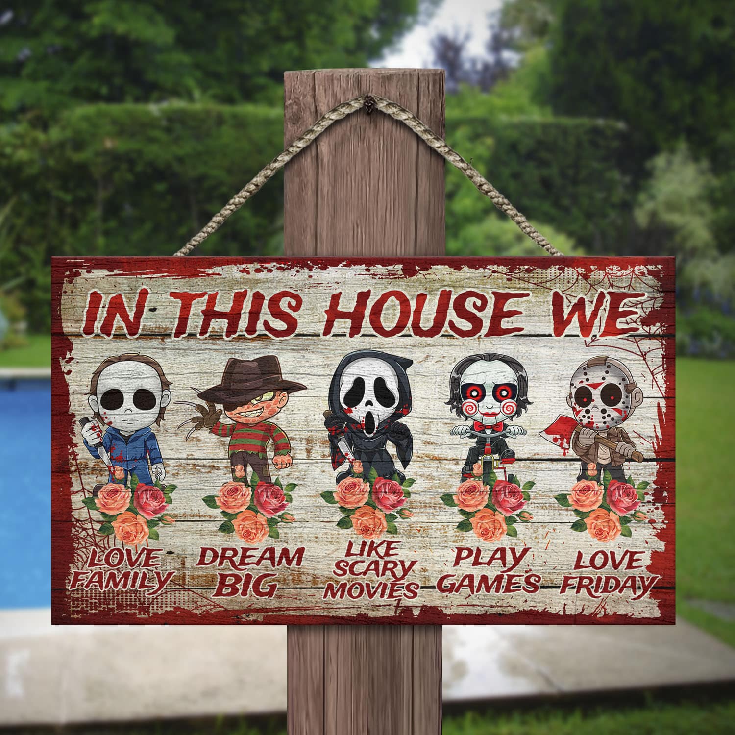 Let’s Shop In This House We Love Family Dream Big Like Scary Movies Horror Movie Characters Rectangle Wooden Door Sign!