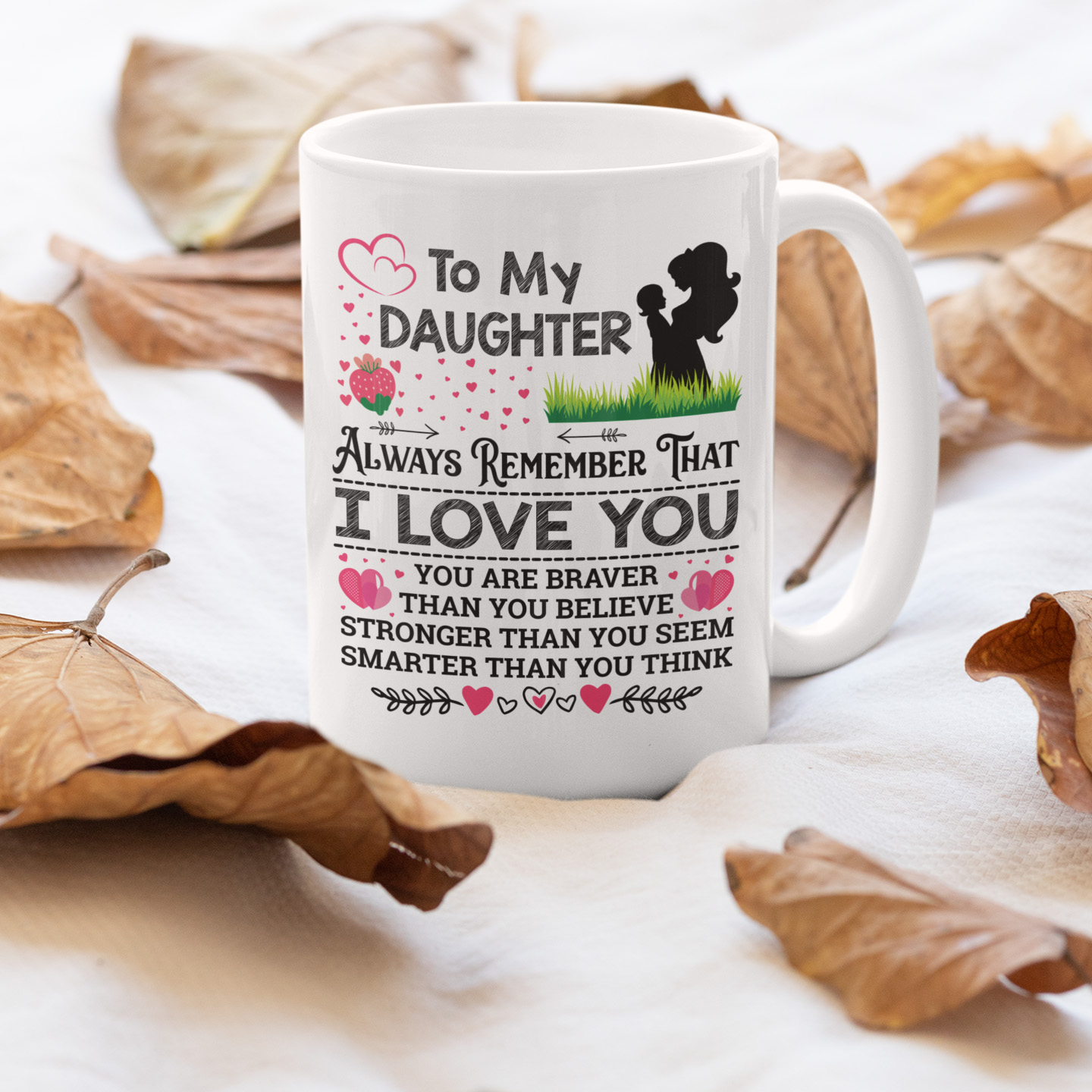 Are you spending too much time to find creative merchandise for you or suitable & special gifts for your mommy, your daddy, your son, your daughter, your children, your friends or someone you love? The struggle is over because we have various To My Daughter Never Forget how Much I Love You Mug, to My Daughter Coffee Mug, Mug to My Daughter, to My Daughter Mug, to My Daughter Coffee Mug from Mom, to My Daughter Mug from Mom, to My Daughter Mug Love Mom which will make perfect presents for your beloveds. In order to make your present stand out, we have created lots of unique and awesome customized photo gifts & personalized designs.