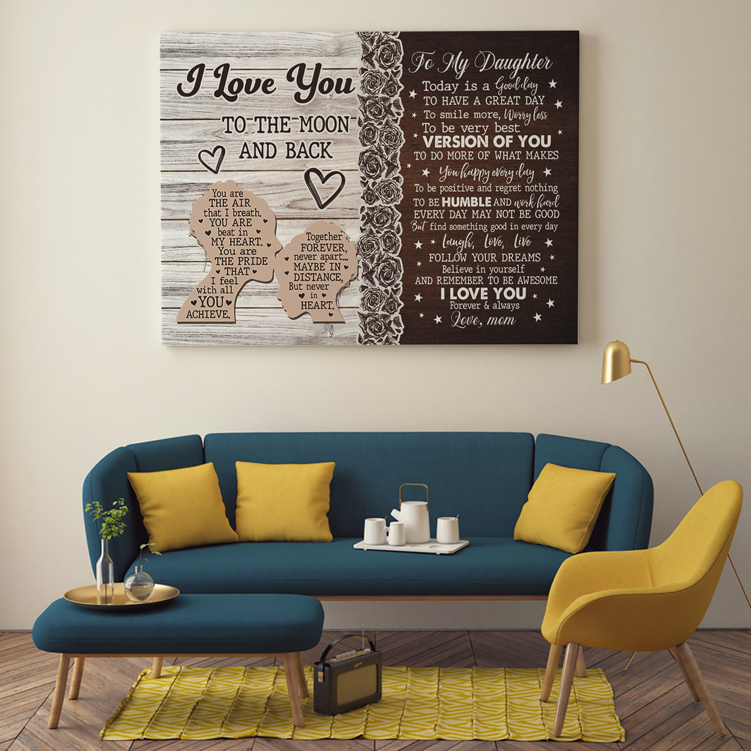 Are you spending too much time to find creative merchandise for you or suitable & special gifts for your mommy, your daddy, your son, your daughter, your children, your friends or someone you love? The struggle is over because we have various Silhouette Mom Daughter Canvas, to My Daughter Canvas Silhouette, to My Daughter Canvas from Mom, Canvas to My Daughter from Mom to My Daughter Love from Mom Canvas which will make perfect presents for your beloveds. In order to make your present stand out, we have created lots of unique and awesome customized photo gifts & personalized designs.