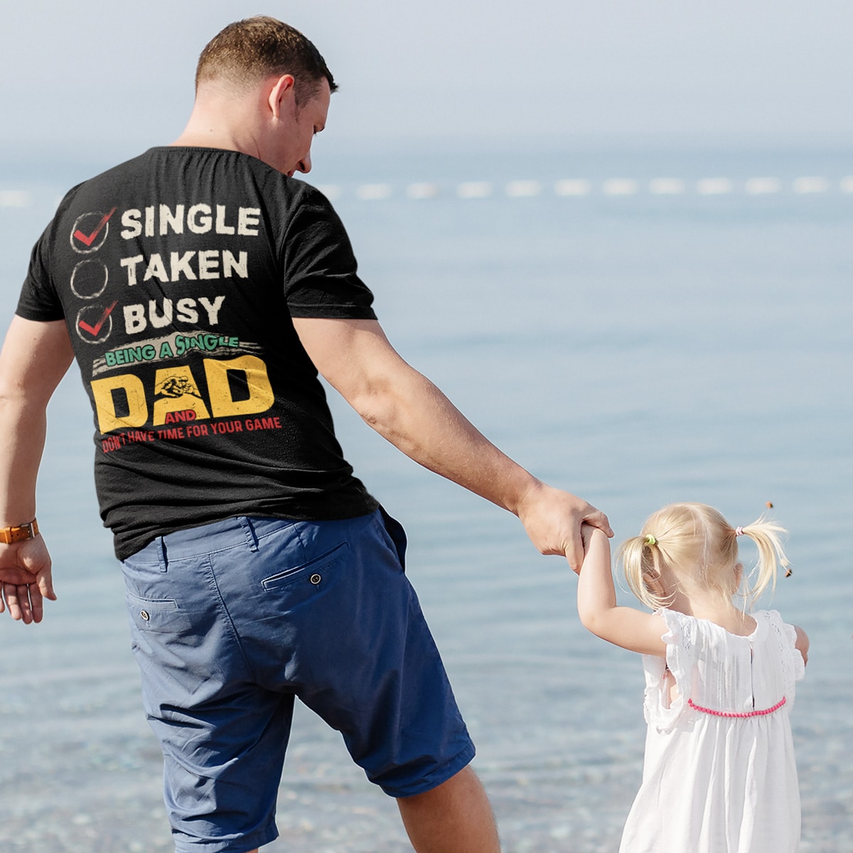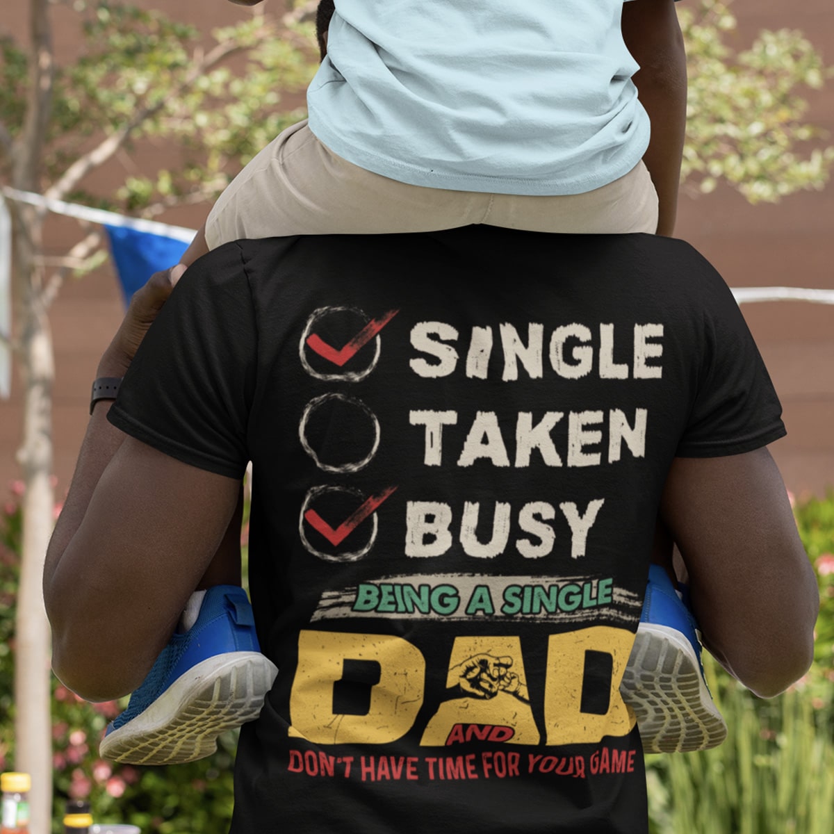 Single Taken Busy Being A Single Dad And Don’t Have Time For Your Game Print On Back T-Shirt