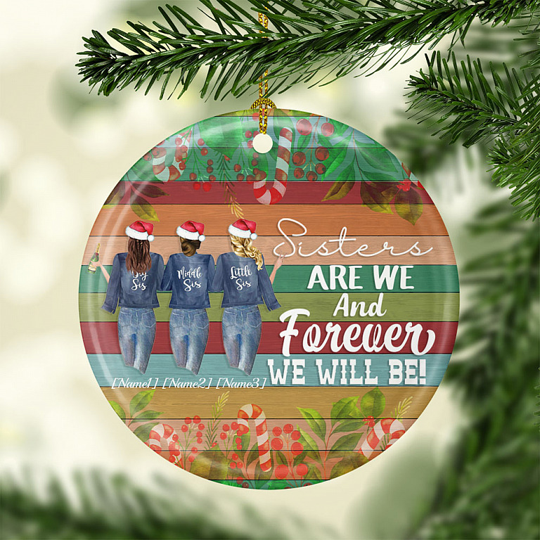 Let’s Shop Personalized Sisters Are We And Forever We Will Be Christmas Best Friends Sisters Gifts Hoilday Circle Ornament!