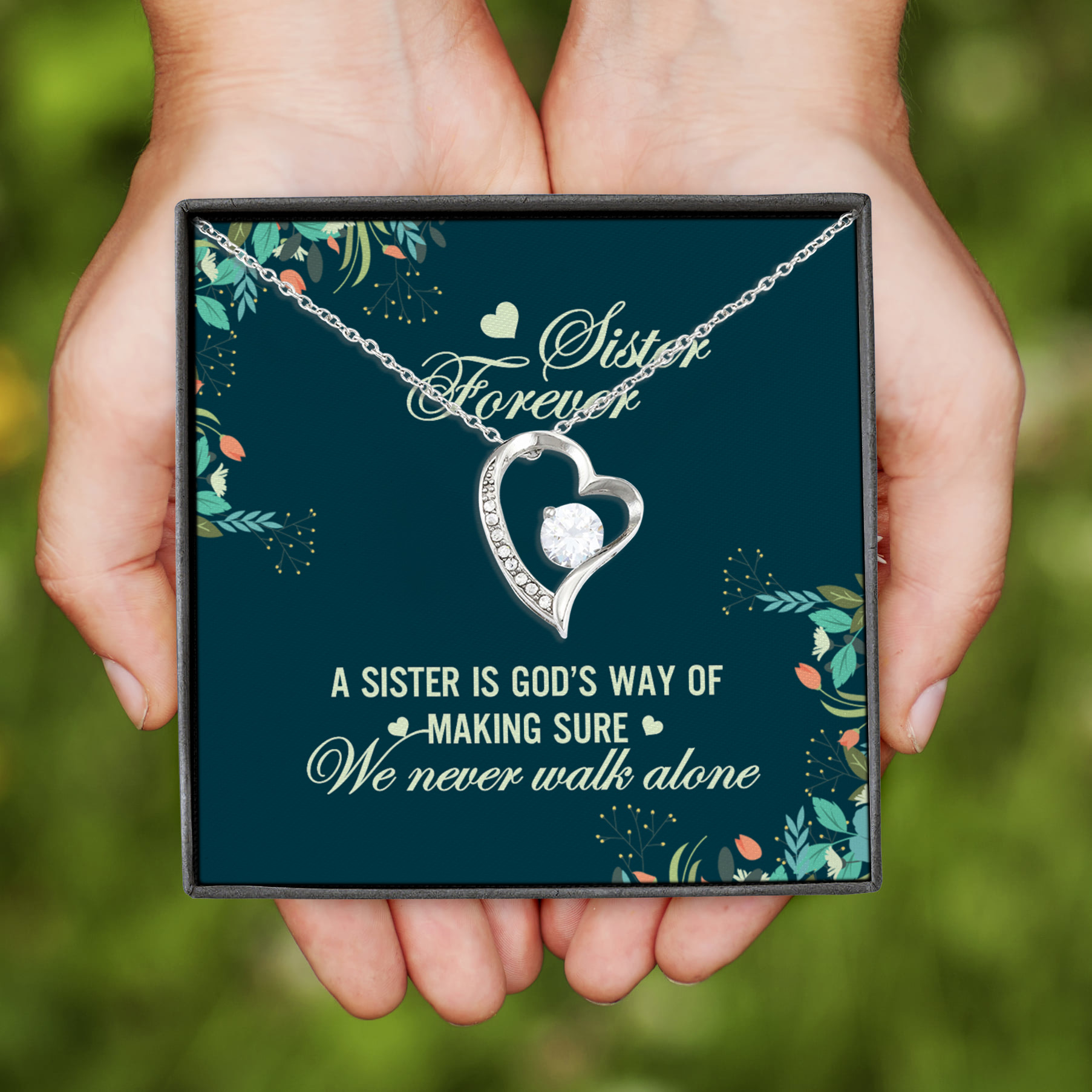 Let’s Shop Sister Forever A Sister Is God’s Way Of Making Sure We Never Walk Alone Forever Love Heart Pendant Necklace!