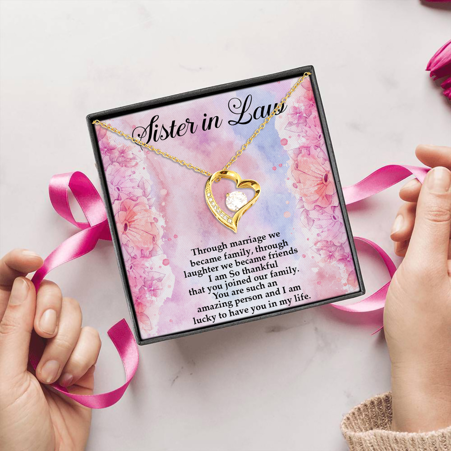 Let’s Shop Gifts To Sister-in-Law Through Marriage We Became Family Forever Love Pendant Necklace!
