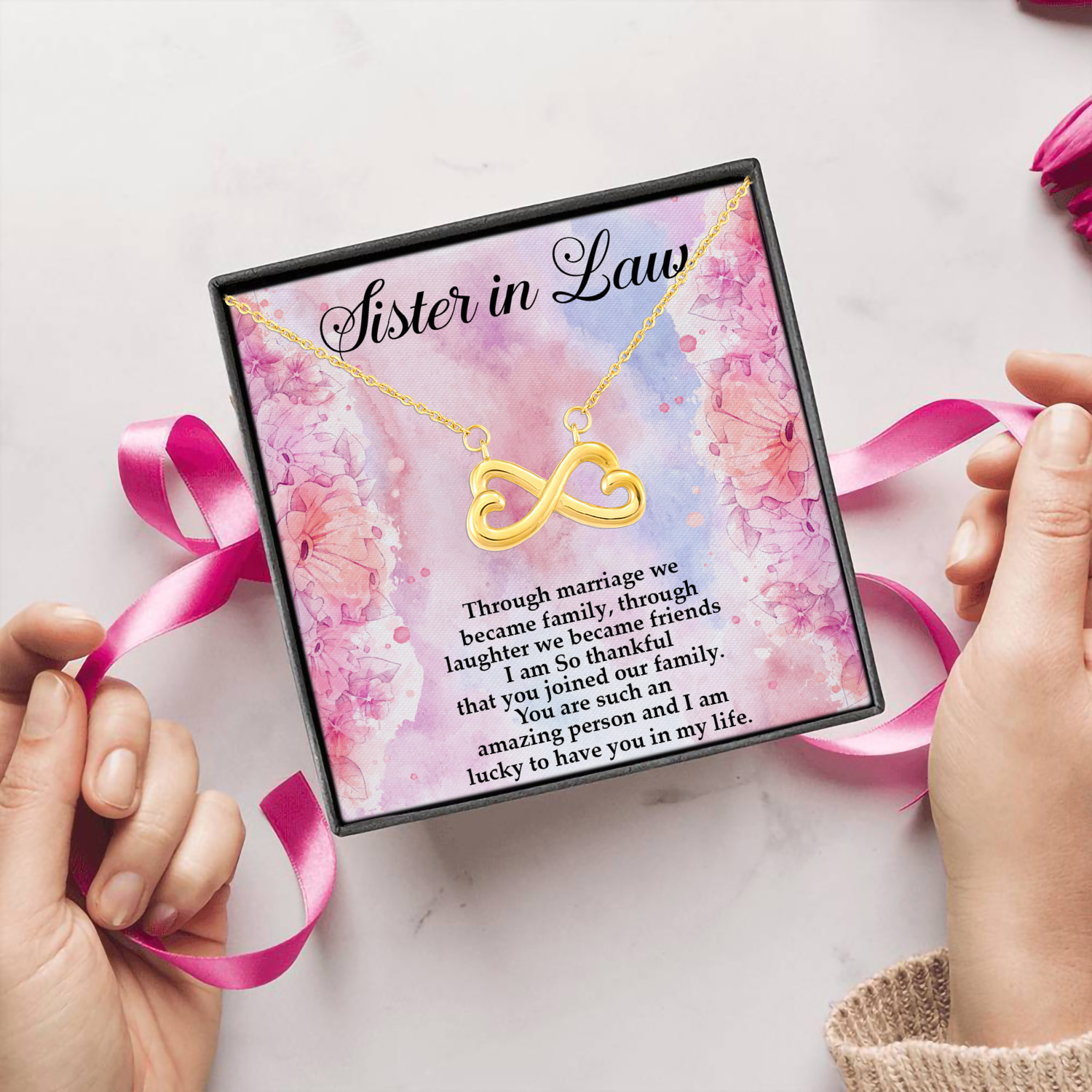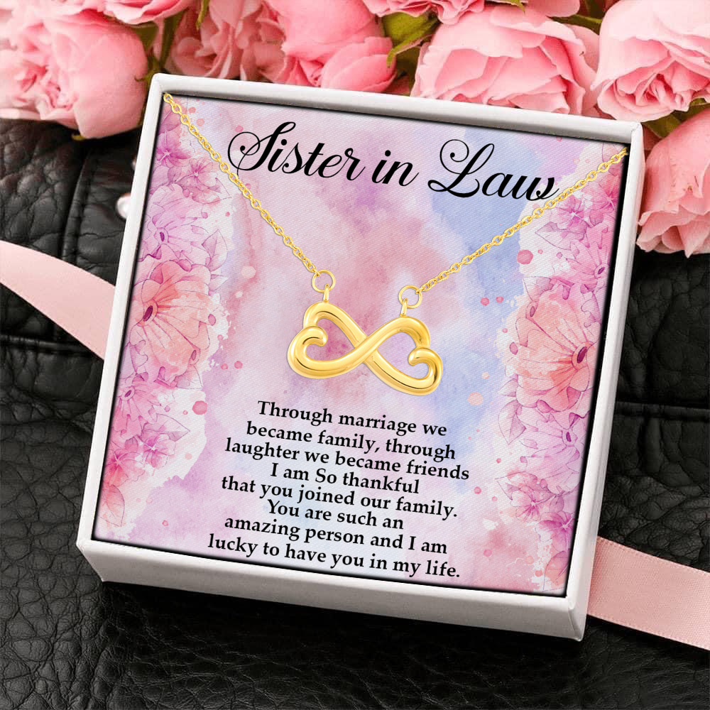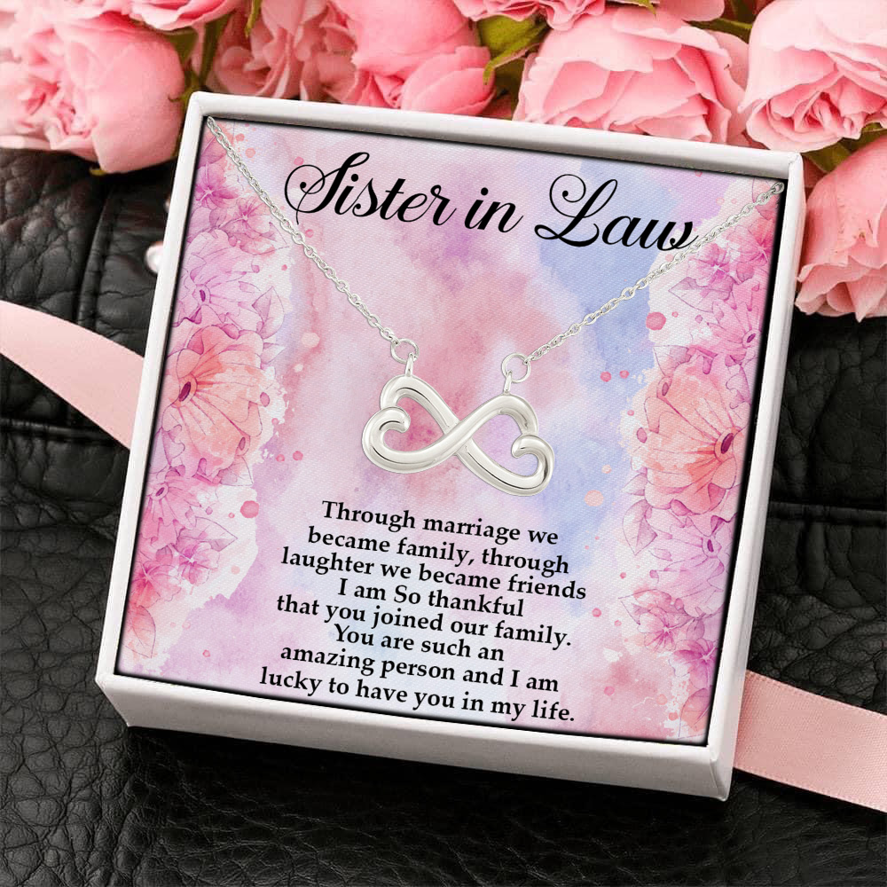 Let’s Shop Gifts To Sister-in-Law Through Marriage We Became Family Infinity Heart Pendant Necklace!