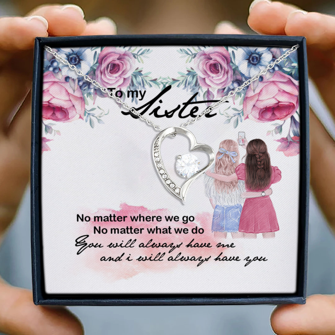 Let’s Shop To My Sister No Matter Where We Go And I Will Always Have You Forever Love Heart Pendant Necklace!