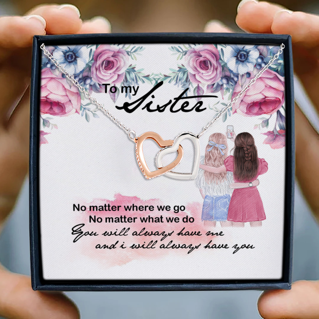Let’s Shop To My Sister No Matter Where We Go And I Will Always Have You Interlocking Hearts Pendant Necklace!