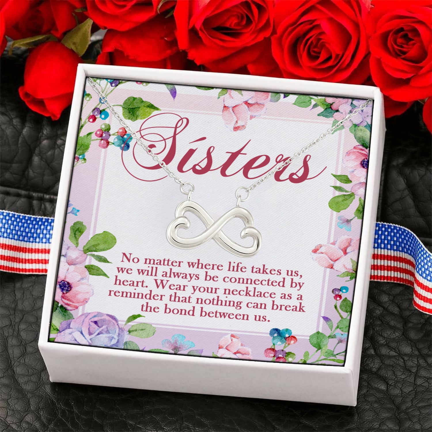 Let’s Shop Sisters No Matter Where Life Takes Us We Will Always Be Connected by Heart Infinity Heart Pendant Necklace!
