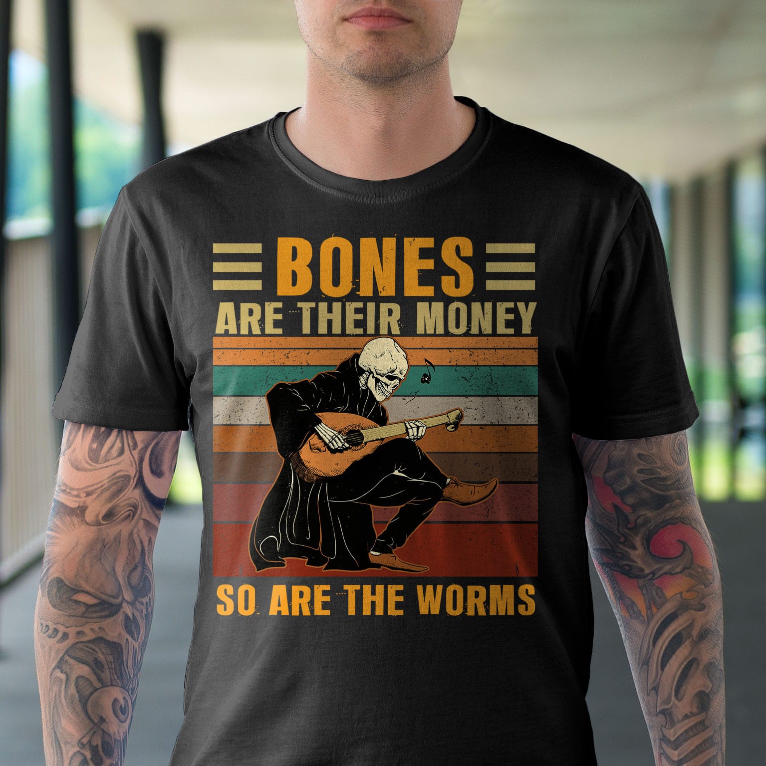 Bones Are Their Money So Are The Worms Funny Skeleton Playing Guitar Vintage T-Shirt