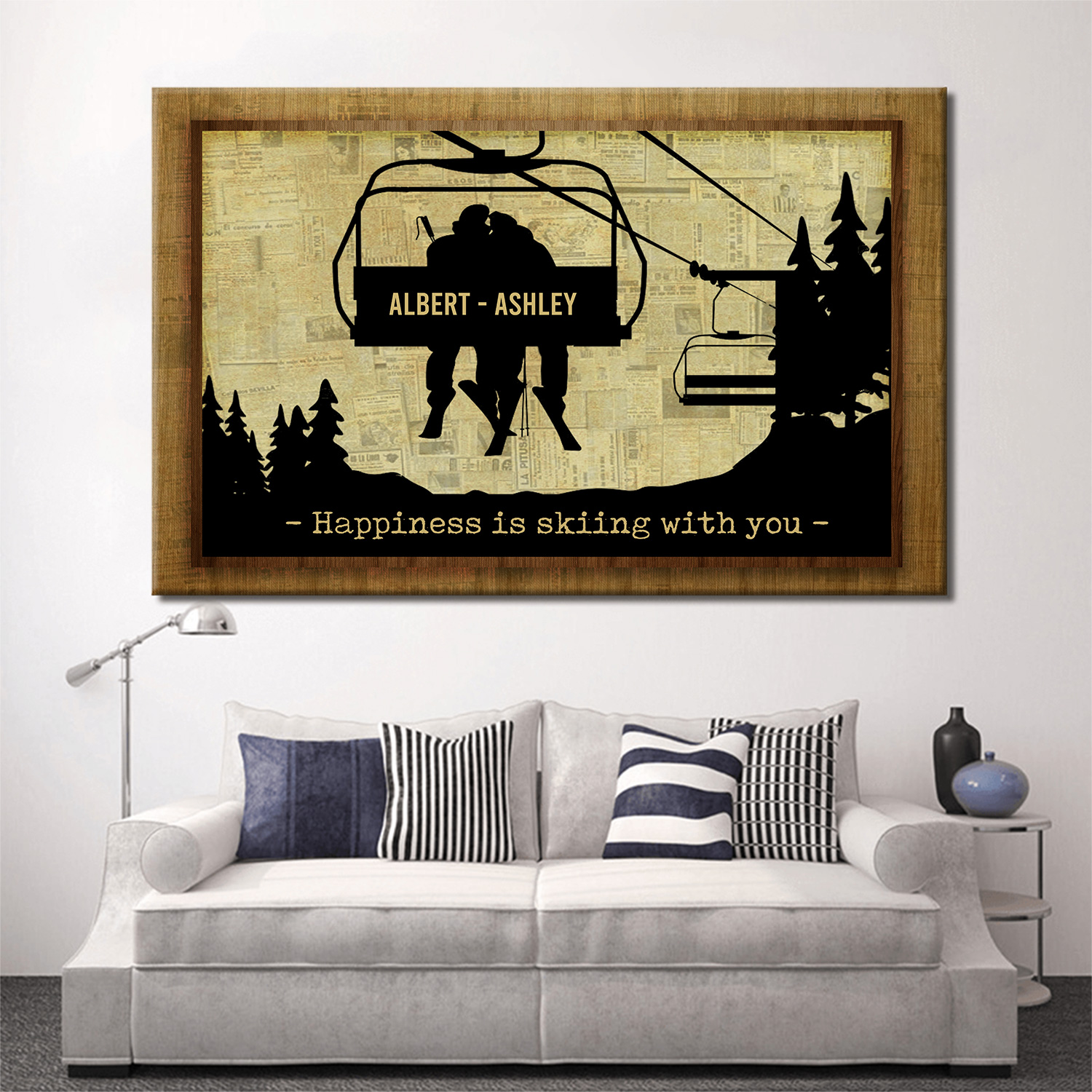 Let’s Shop Personalized Happiness Is Skiing With You Gallery Wrapped Framed Canvas Prints – Unframed Poster – Wall Art!