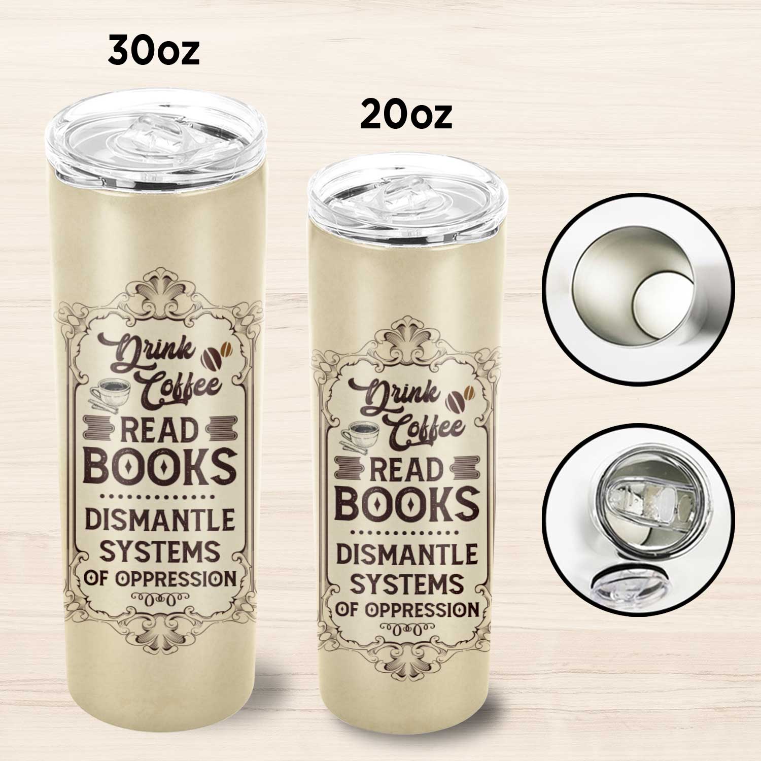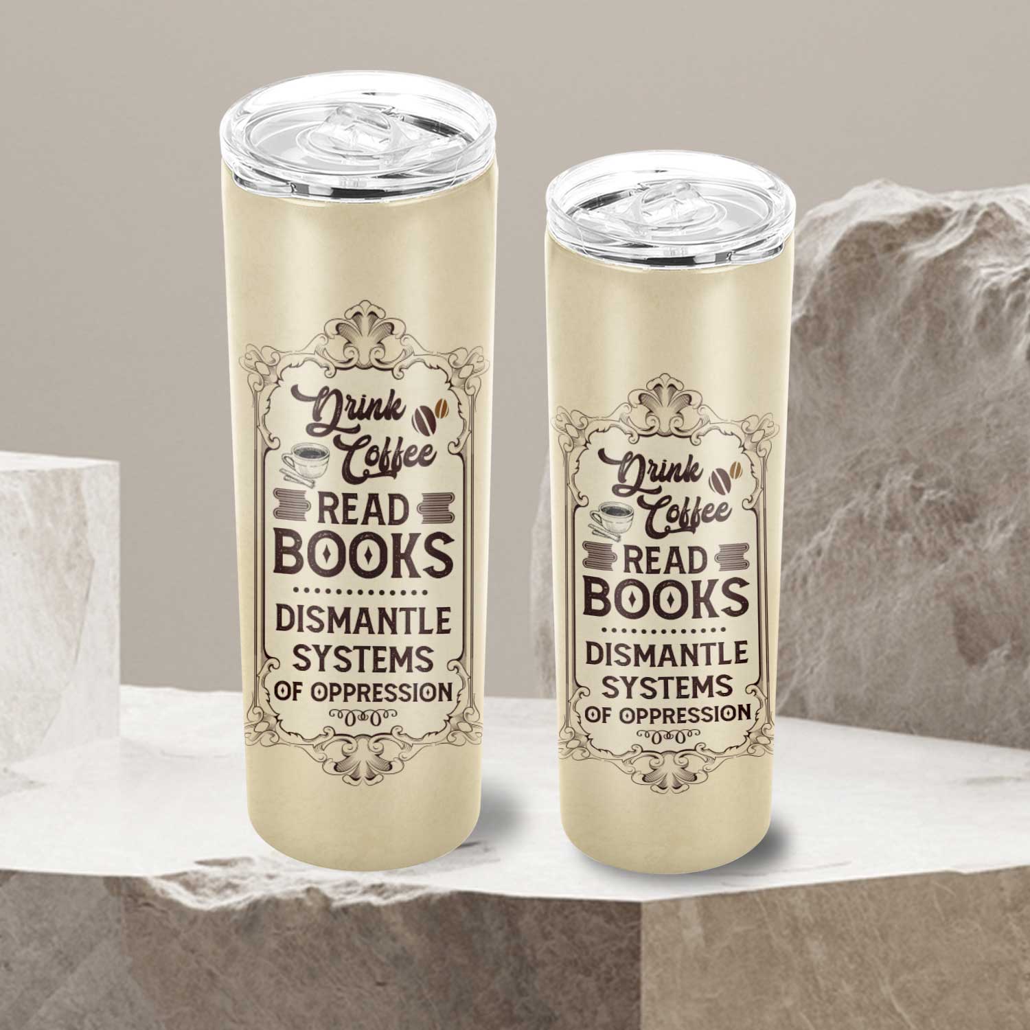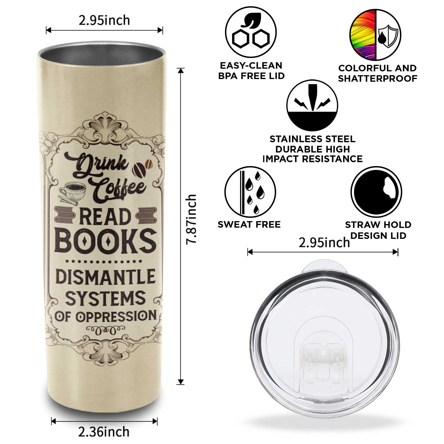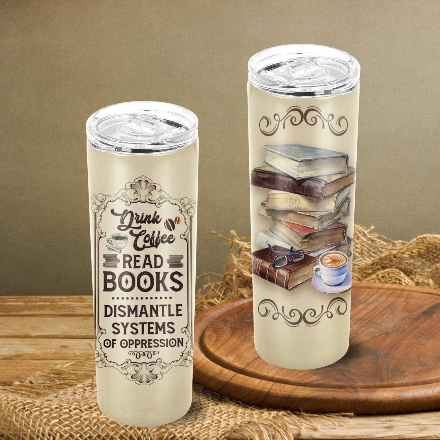 Let’s Shop Vintage Drink Coffee Read Book Dismantle of Oppression Skinny Vacuum Insulated Tumbler Cup Water Bottle Coffee Mug!